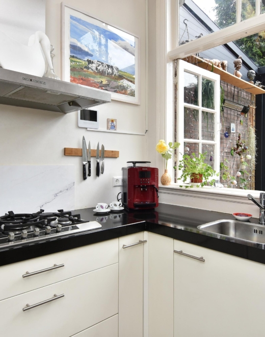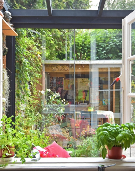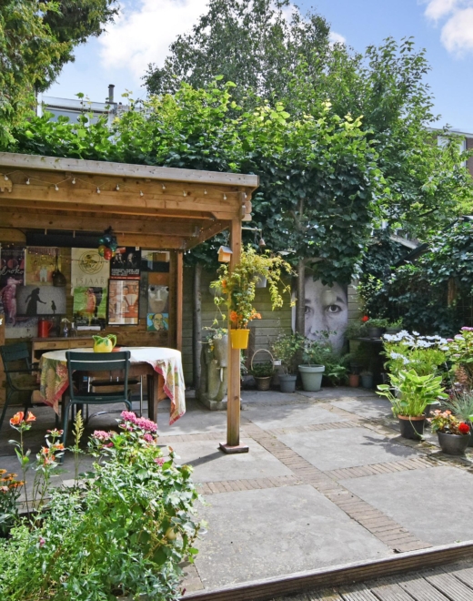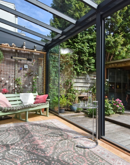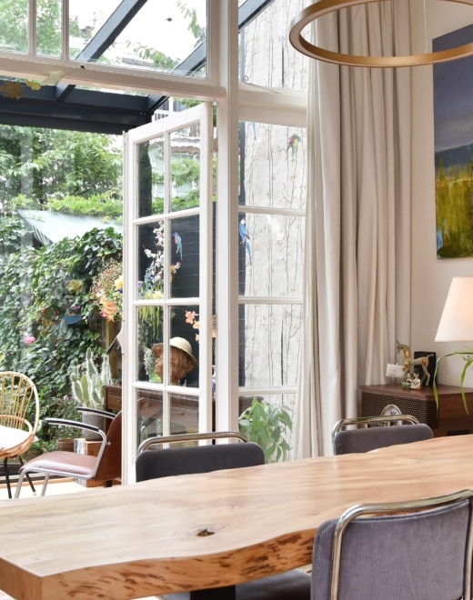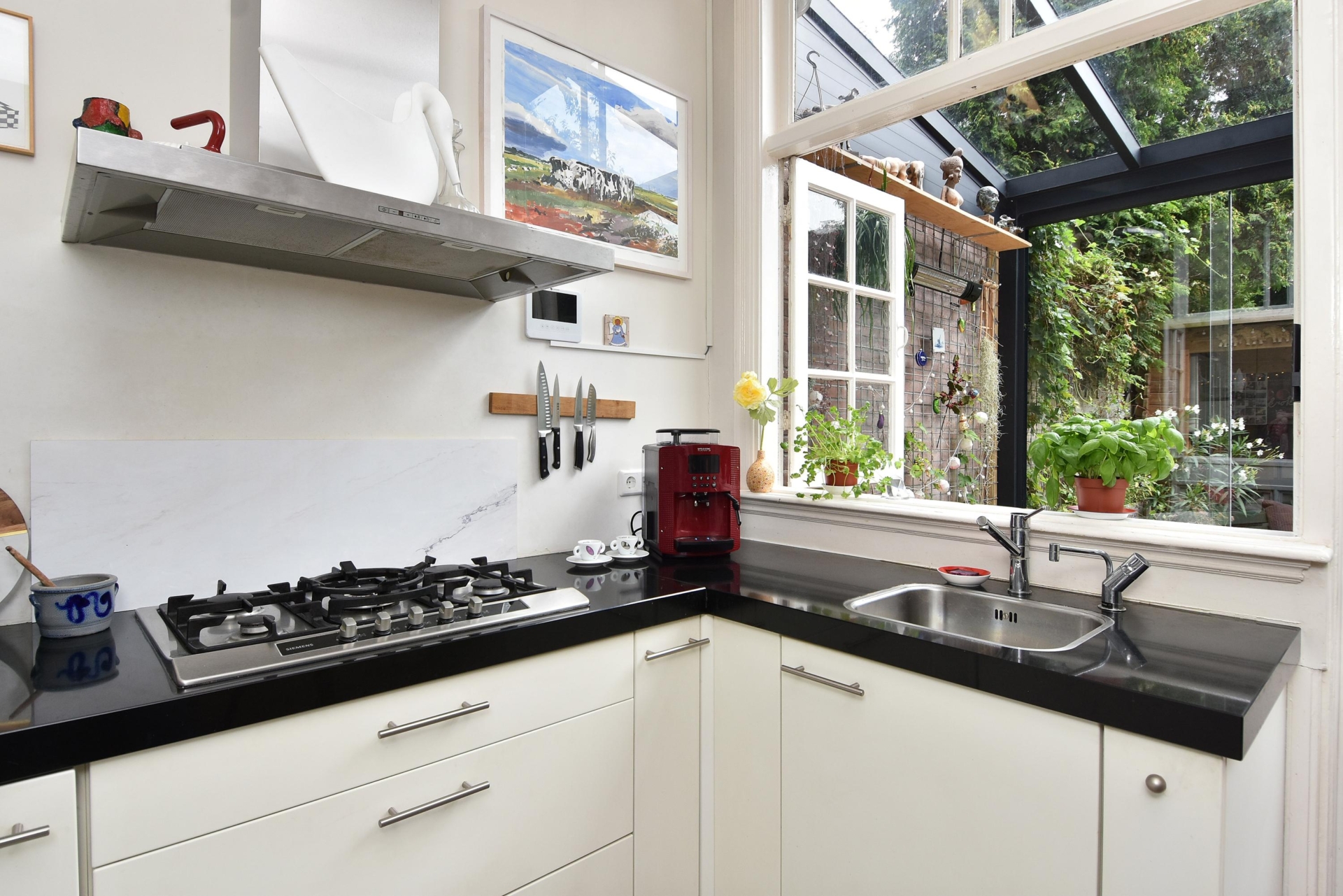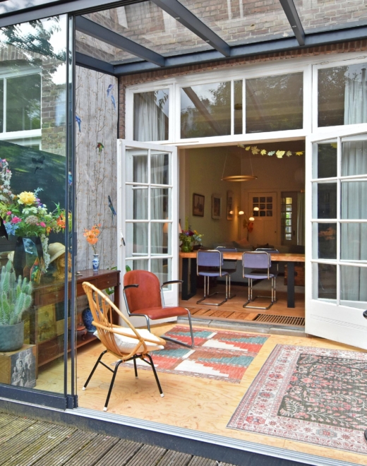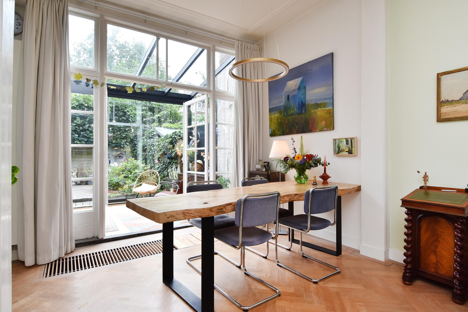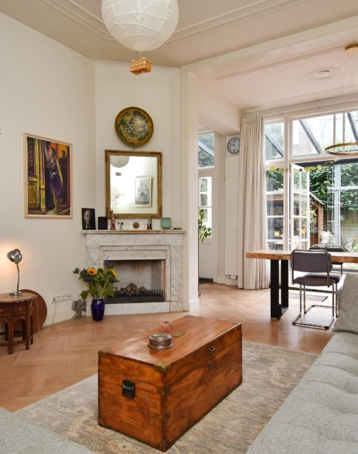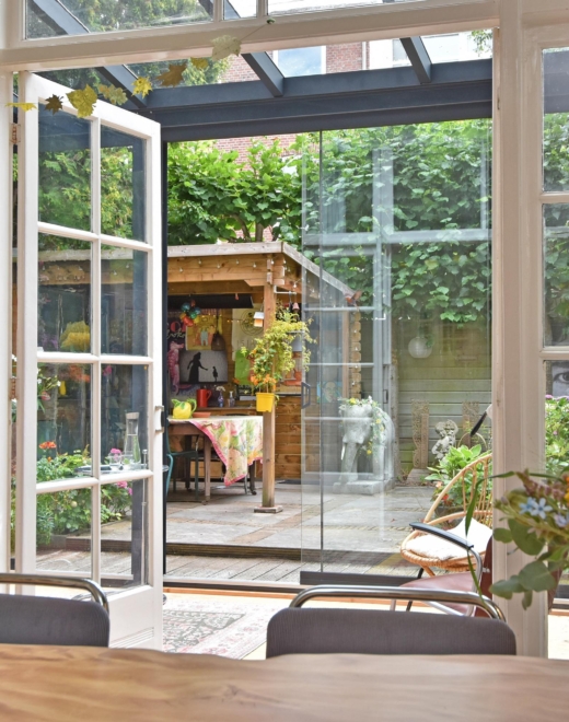 Het absolute pronkstuk van deze parterre is zonder twijfel de heerlijk lichte en zonnige serre, gerealiseerd in 2024. Via een glazen pui stap je zo de fraai aangelegde, sfeervolle stadstuin in, compleet met veranda – een ideale plek om het hele jaar door te genieten.