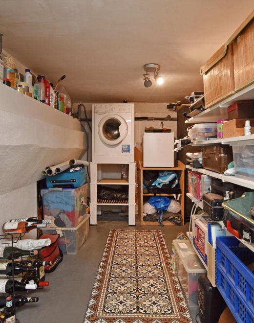 Finally, the property features a surprisingly spacious basement with connections for a washing machine—ideal for extra storage and added functionality.