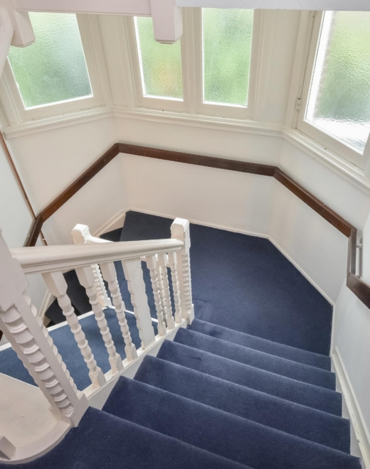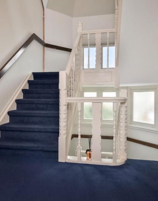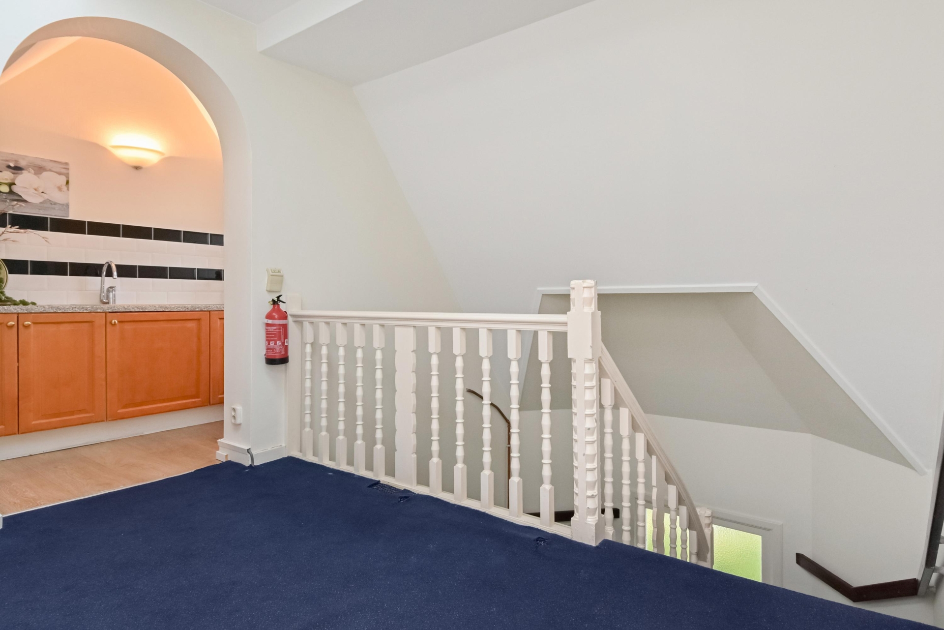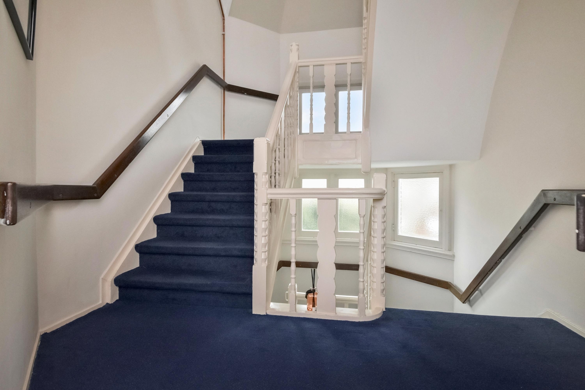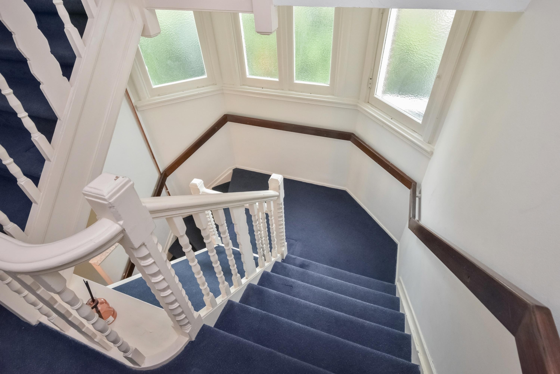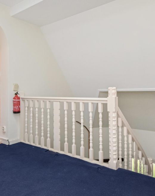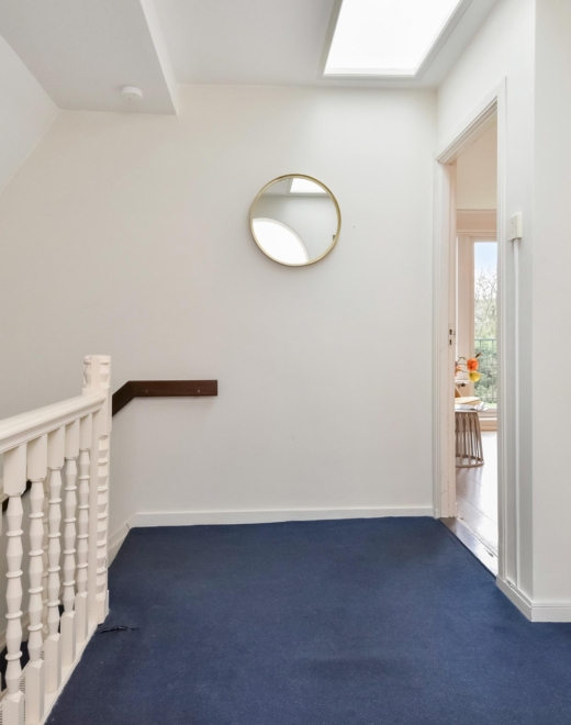 You enter the property through a secure gate leading to a shared pathway, which also provides convenient space for bicycle storage. The entrance welcomes you into a well-maintained hallway. Via your private staircase, featuring beautiful woodwork and a charming landing, you are led to the first floor.