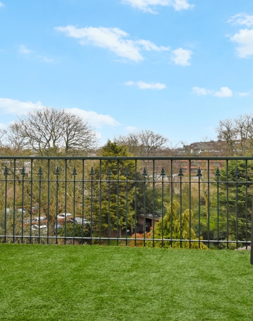On this level, you arrive in the main entrance of the residence. At the front, a bright L-shaped living and dining room offers access to the sunny front balcony, perfectly positioned to enjoy the afternoon and evening sun. From here, you benefit from open views over the square and its attractively landscaped greenery. This space also provides access to a spacious bathroom, fitted with a shower, toilet, and washbasin.