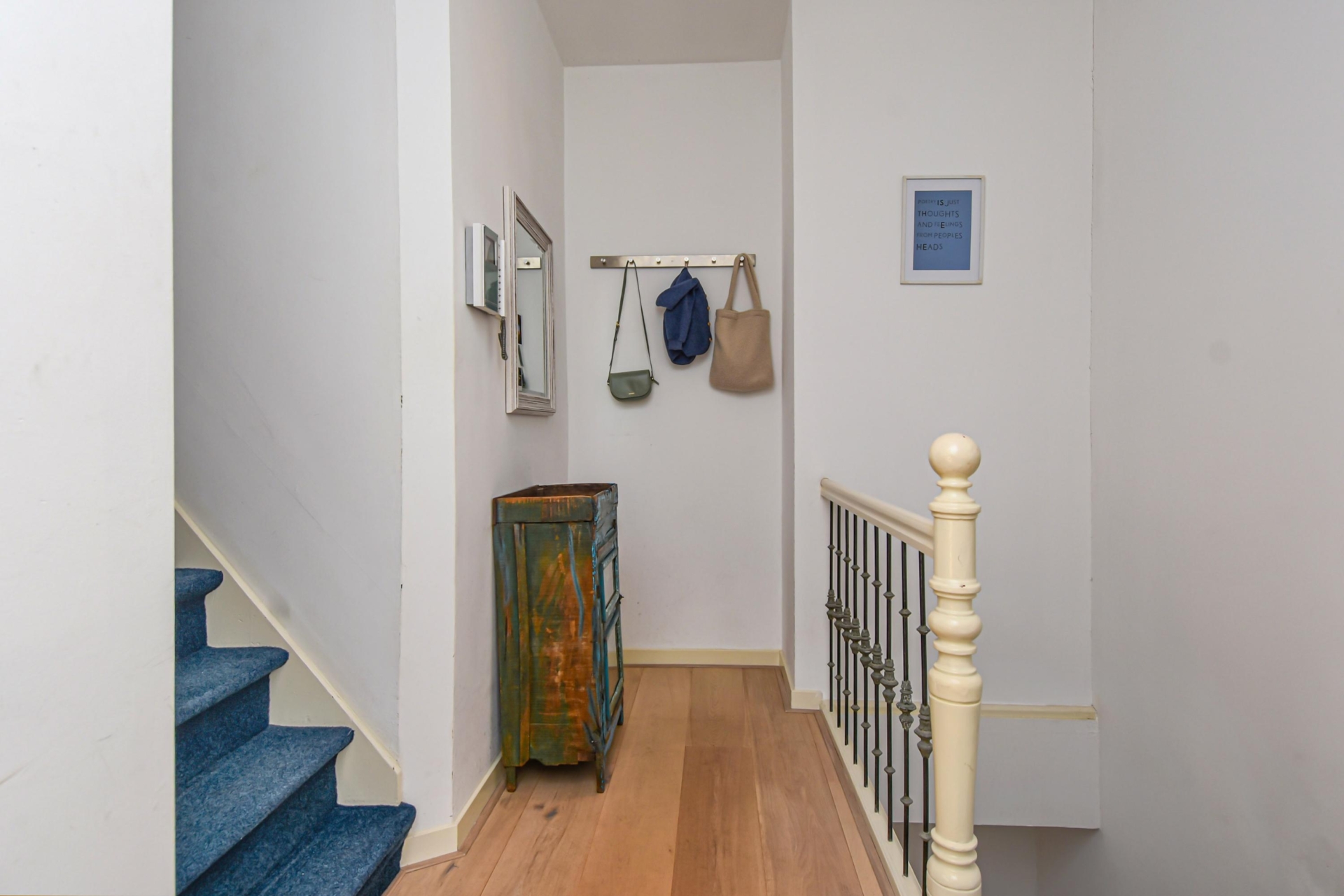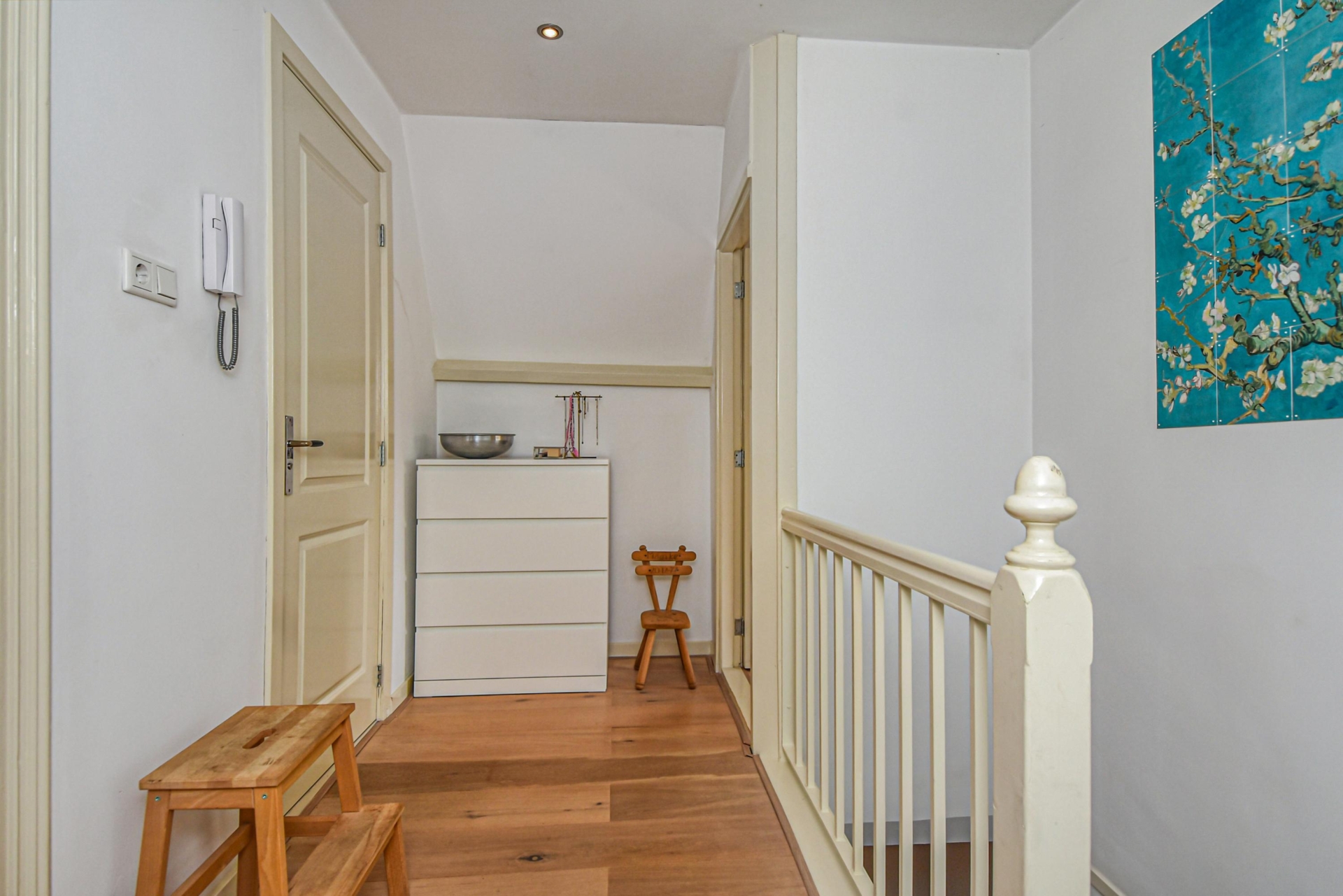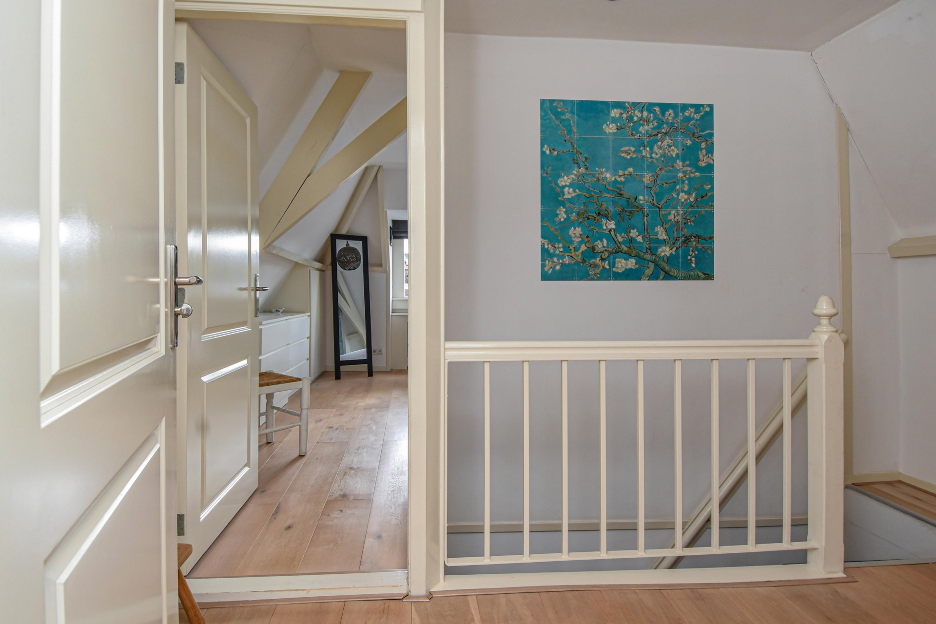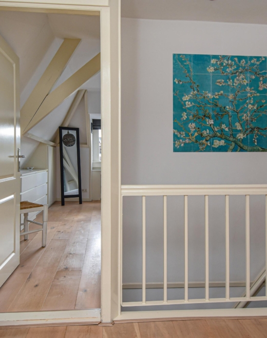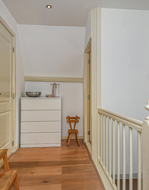 Een trap leidt naar de 3e etage, waar de sfeervolle overloop toegang biedt tot een kast met cv-ketel en 2 slaapkamers.