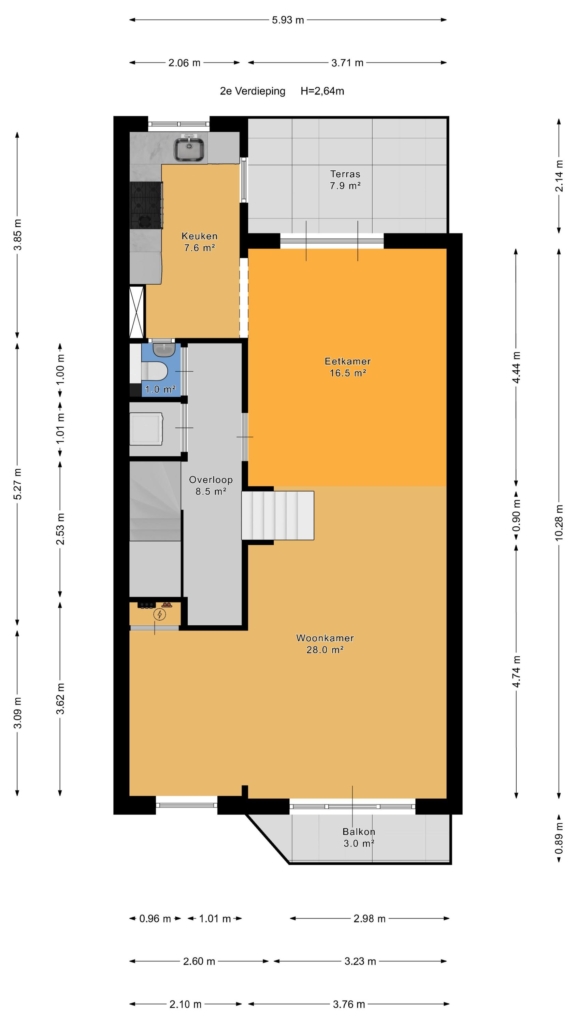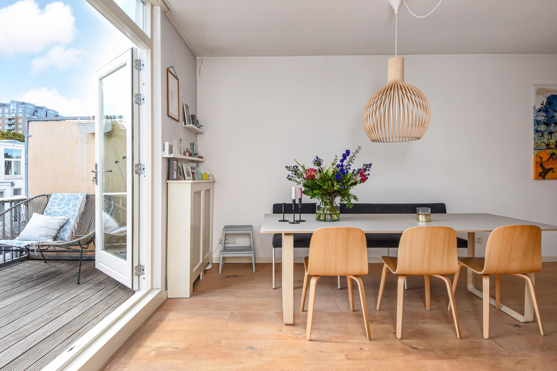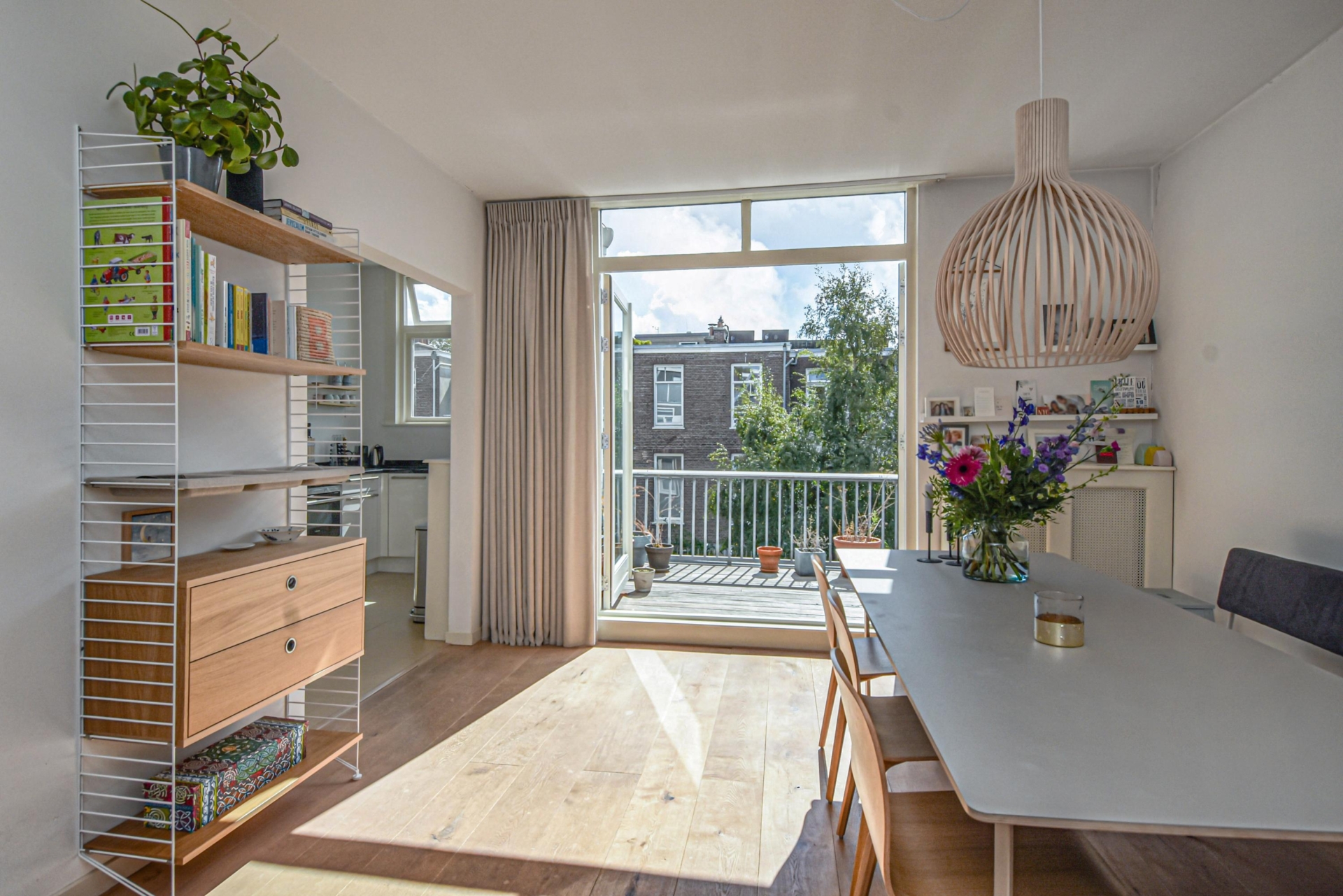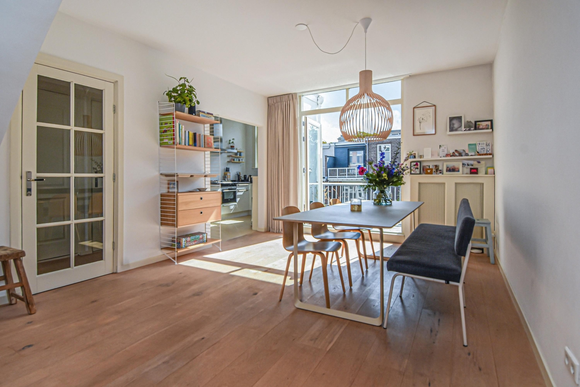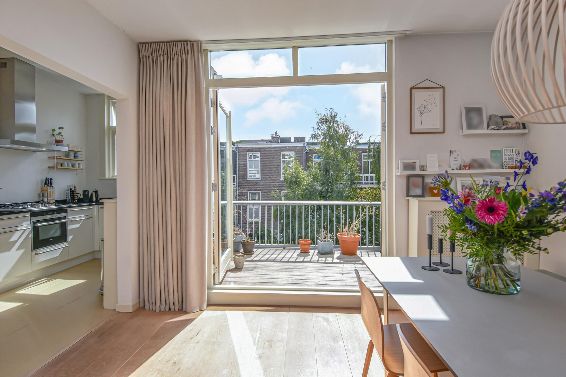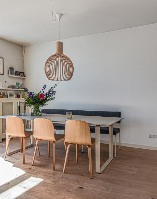 Bij binnenkomst in de lichte, ruime woon-/eetkamer word je meteen omarmd door het warme licht. Aan de voorzijde ligt een charmant balkon, en aan de achterzijde openen de deuren naar een heerlijk zonnig terras op het zuidoosten – een heerlijke plek om te ontspannen of gezellig buiten te eten.