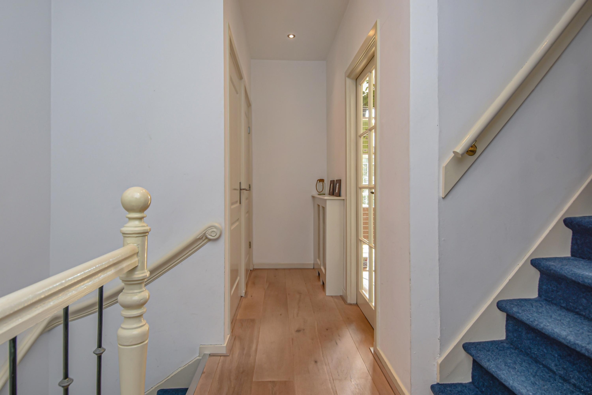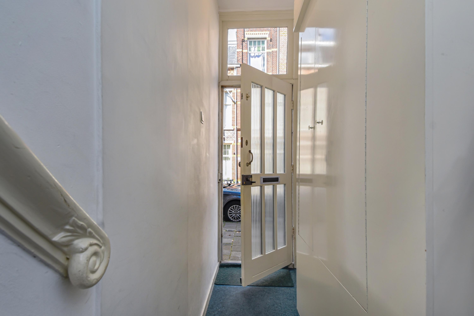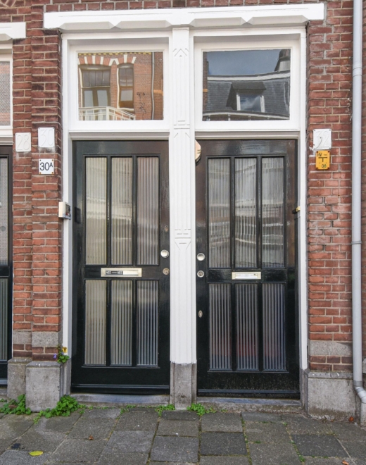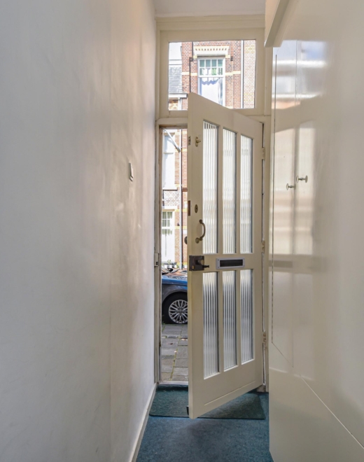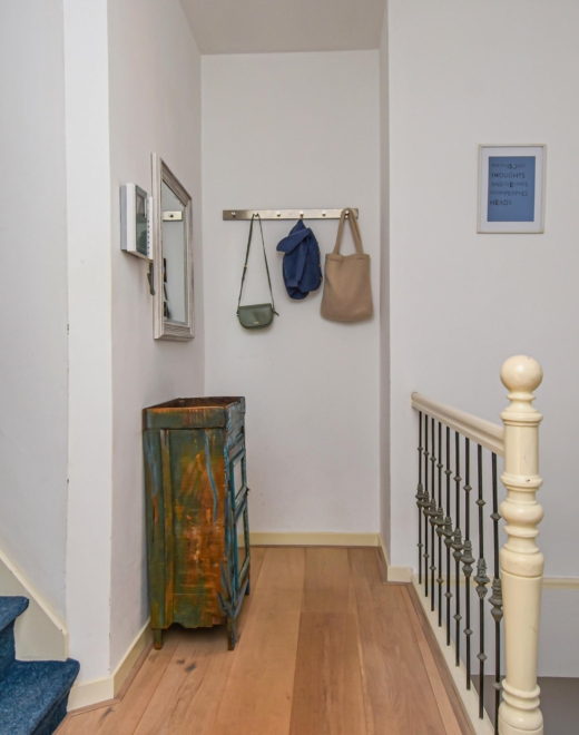 Via de gezamenlijke entree op straatniveau stap je binnen in een halletje, waar de binnentrap je naar de 1e etage brengt.