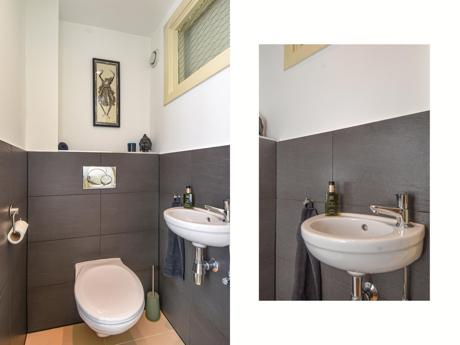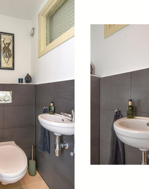 Accessed via the shared entrance at street level, you step into a small hall where the internal staircase leads up to the first floor. Staircase to the second floor. On the landing, you’ll find a guest toilet with a hand basin, a convenient cupboard with washer and dryer connections, and a video intercom system.
