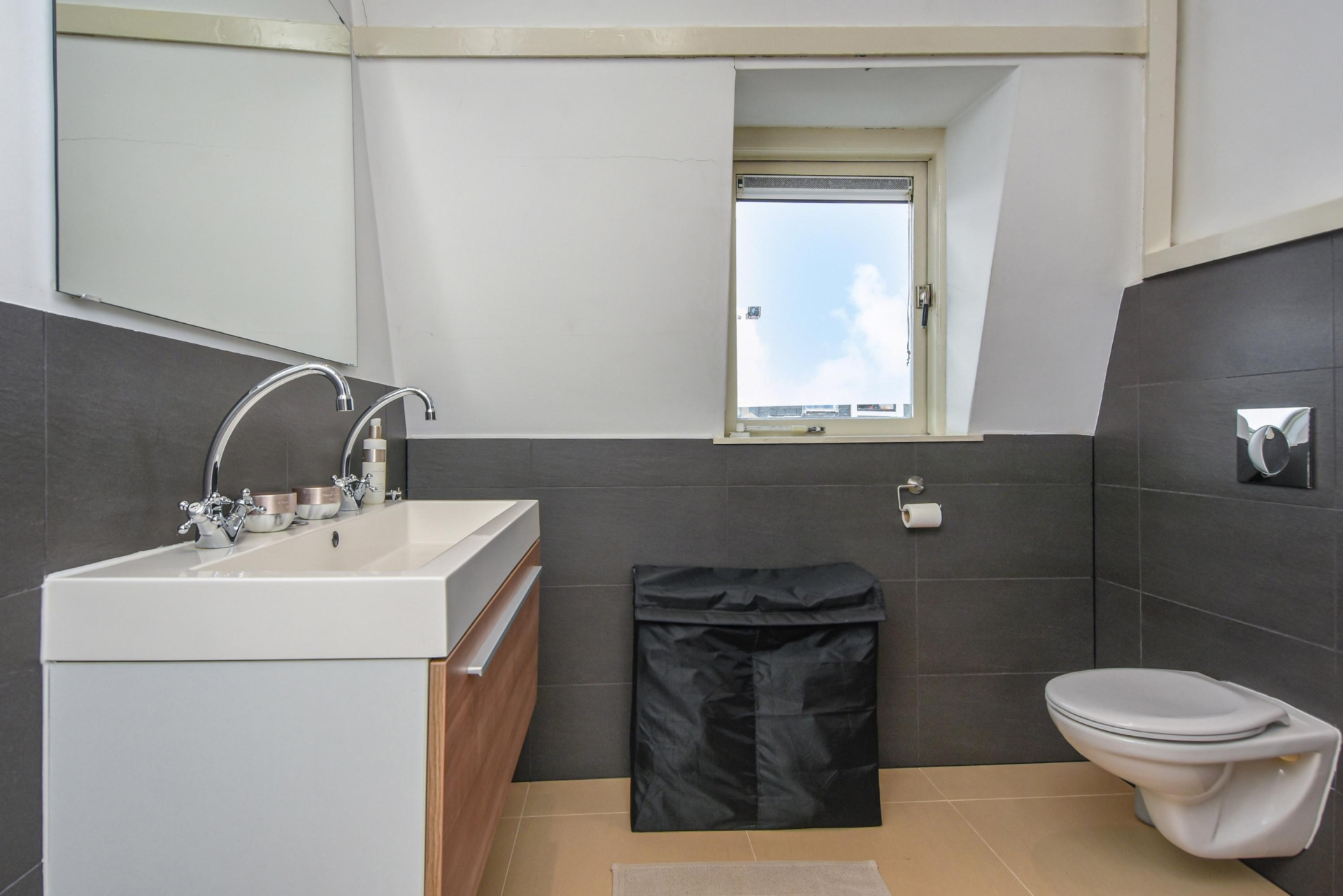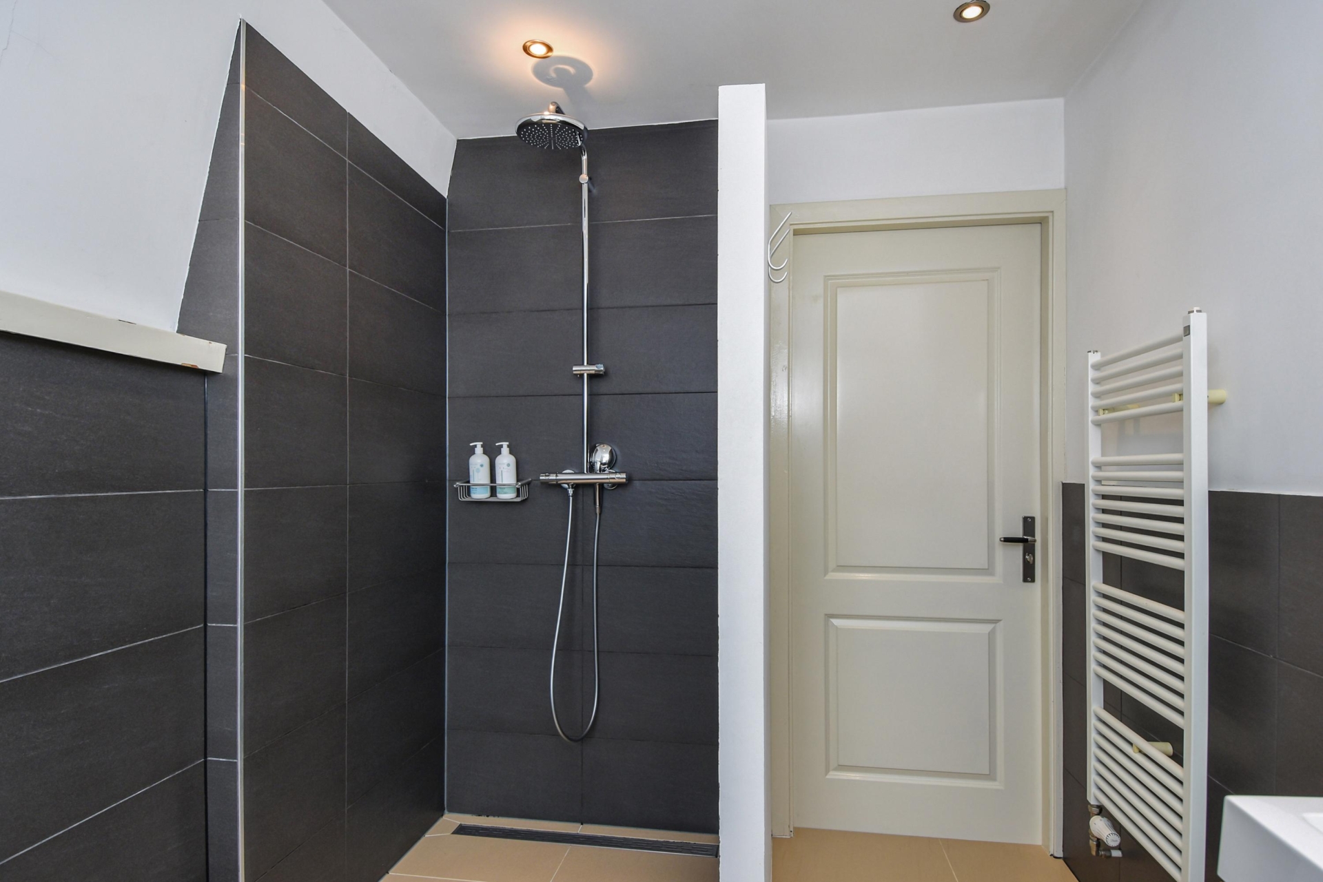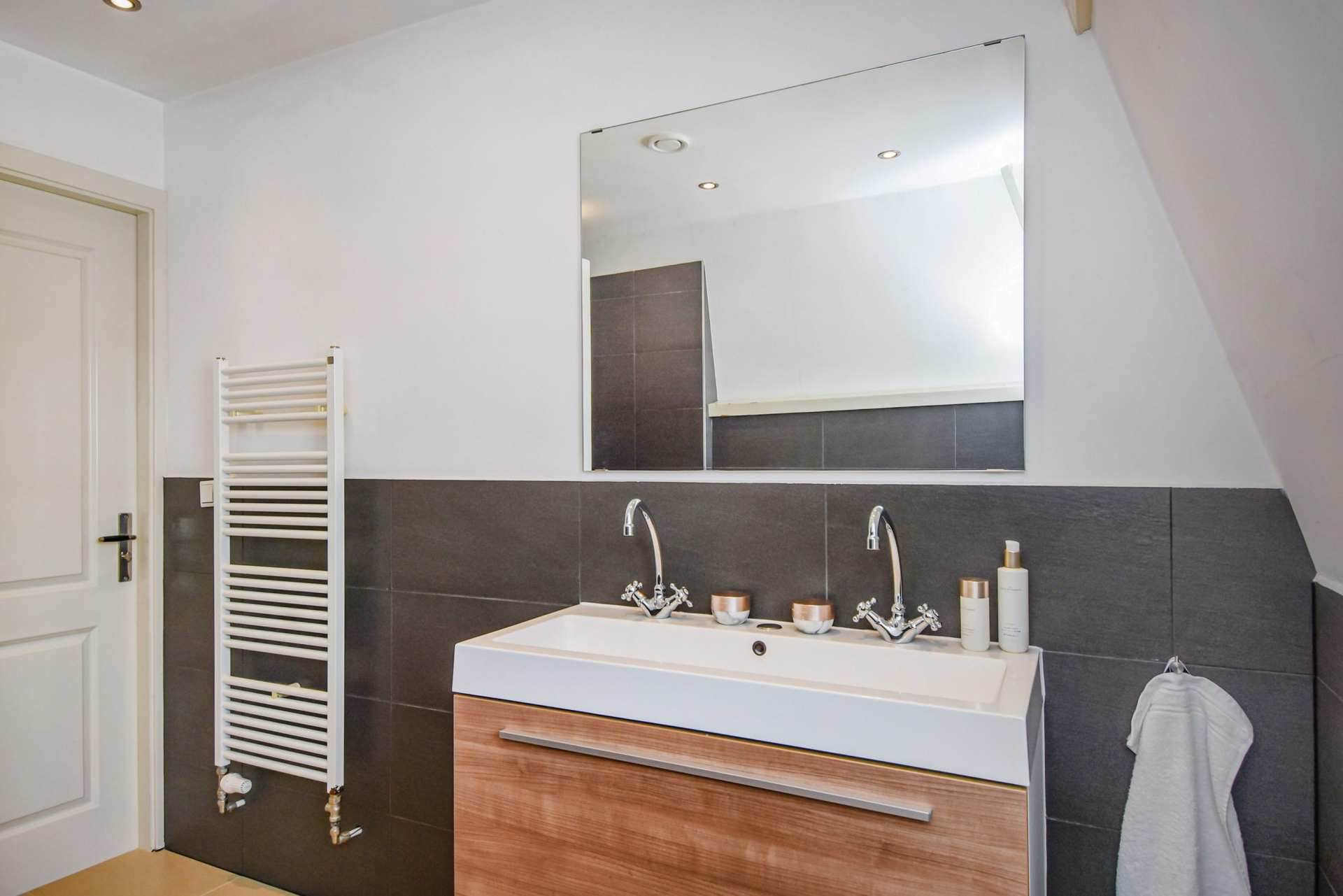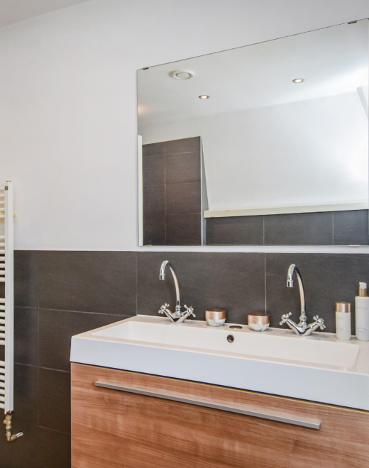 - Badkamervoorzieningen Toilet, dubbele wastafel, inloopdouche