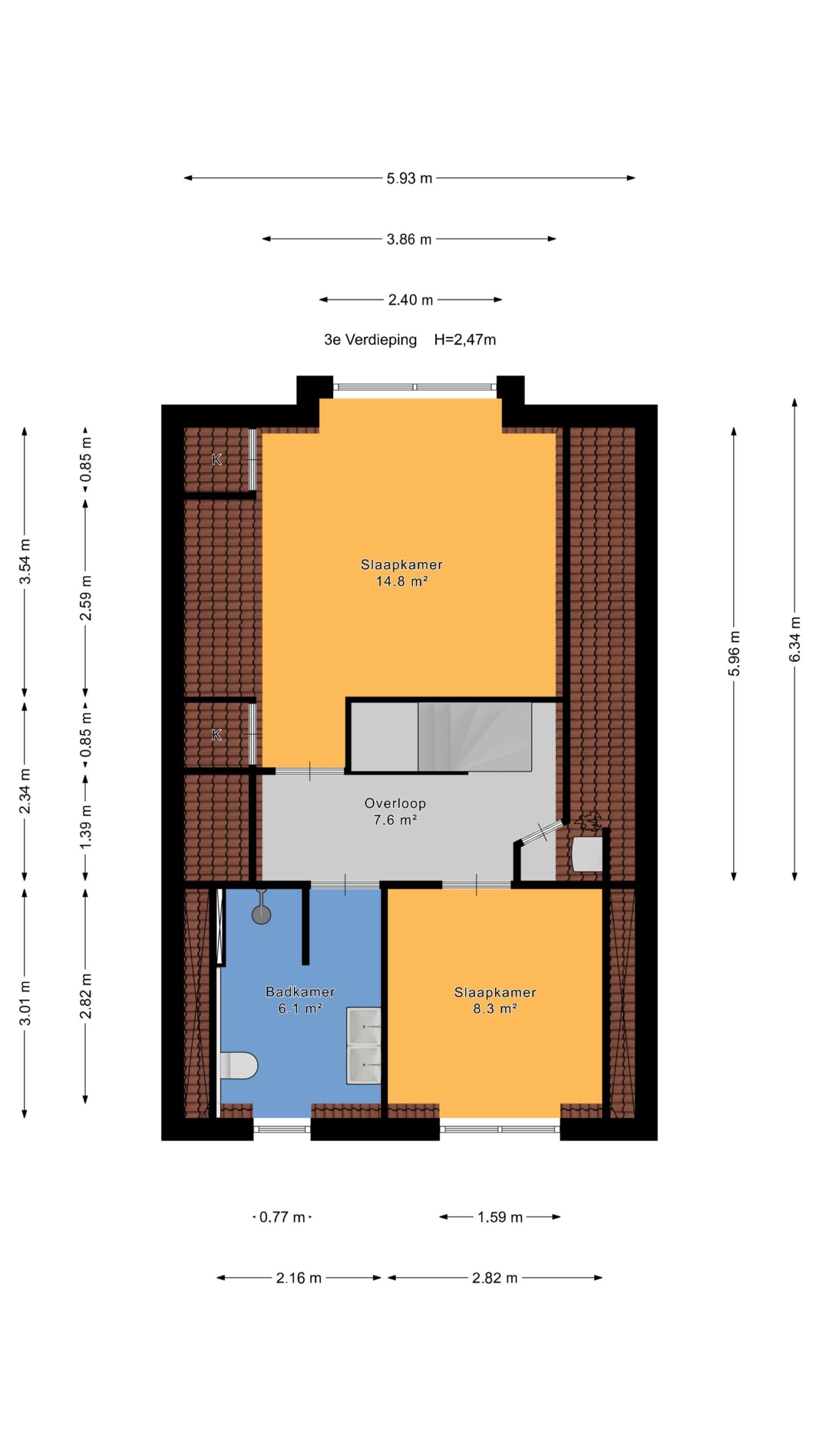 – Woonoppervlakte ca. 106 m² (volgens de branchebrede meetinstructie, afgeleid van de NEN 2580-methode);