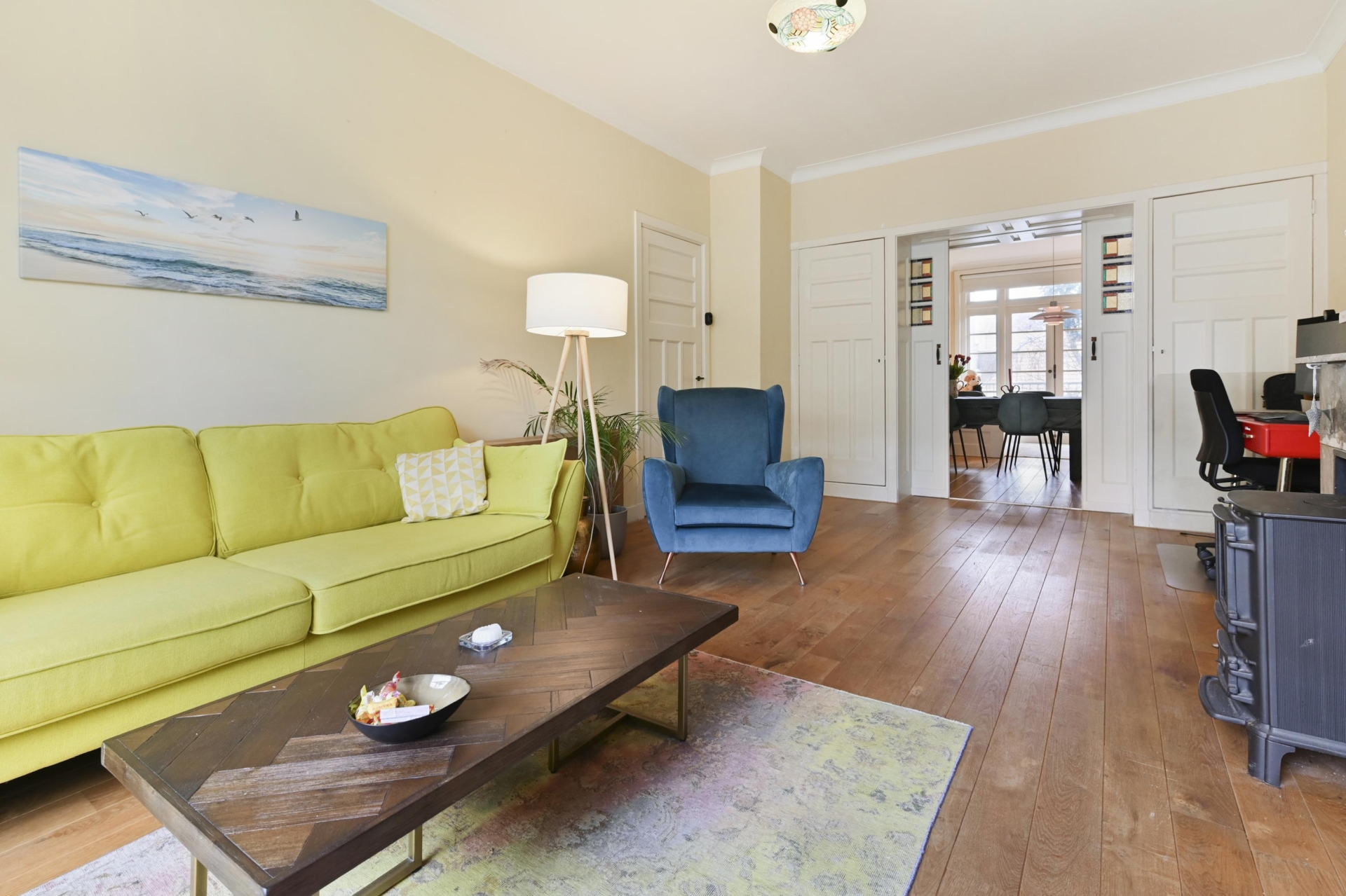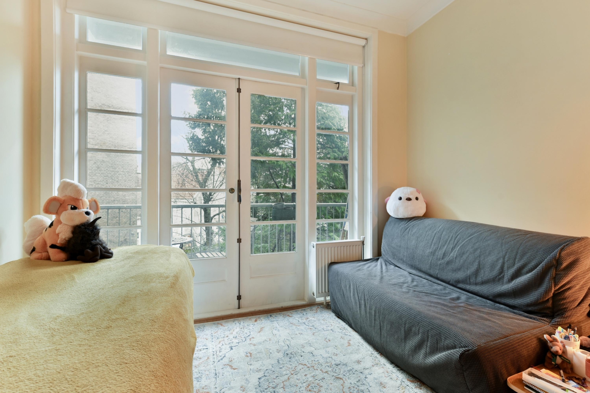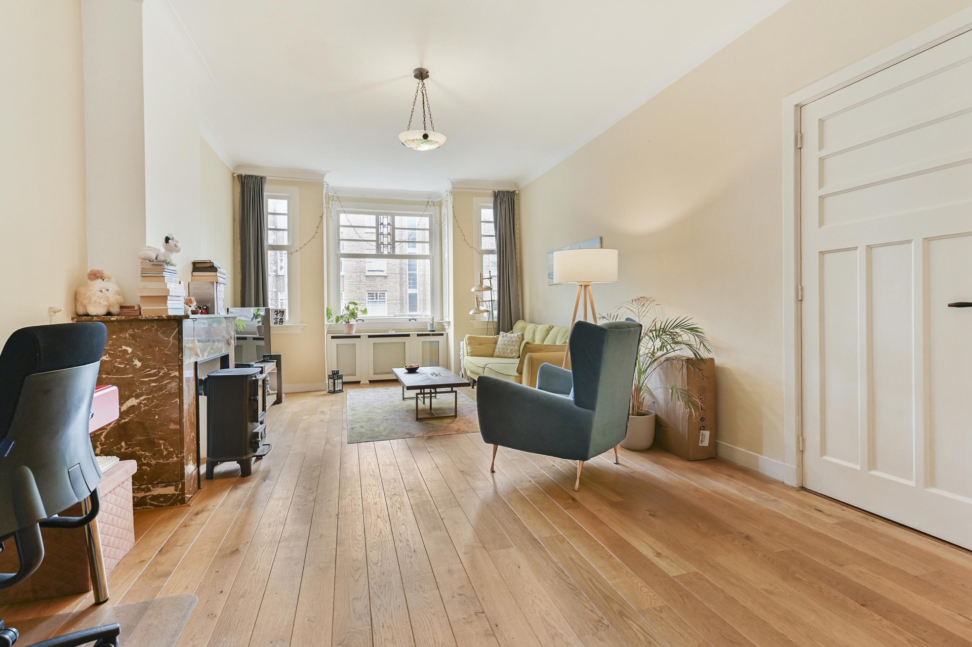 This charming apartment of approximately 93 m² with four rooms (two bedrooms) still features many authentic details, such as stained-glass windows, original en-suite sliding doors with built-in cabinets, and a pleasant balcony, while the city centre of The Hague is within walking distance.