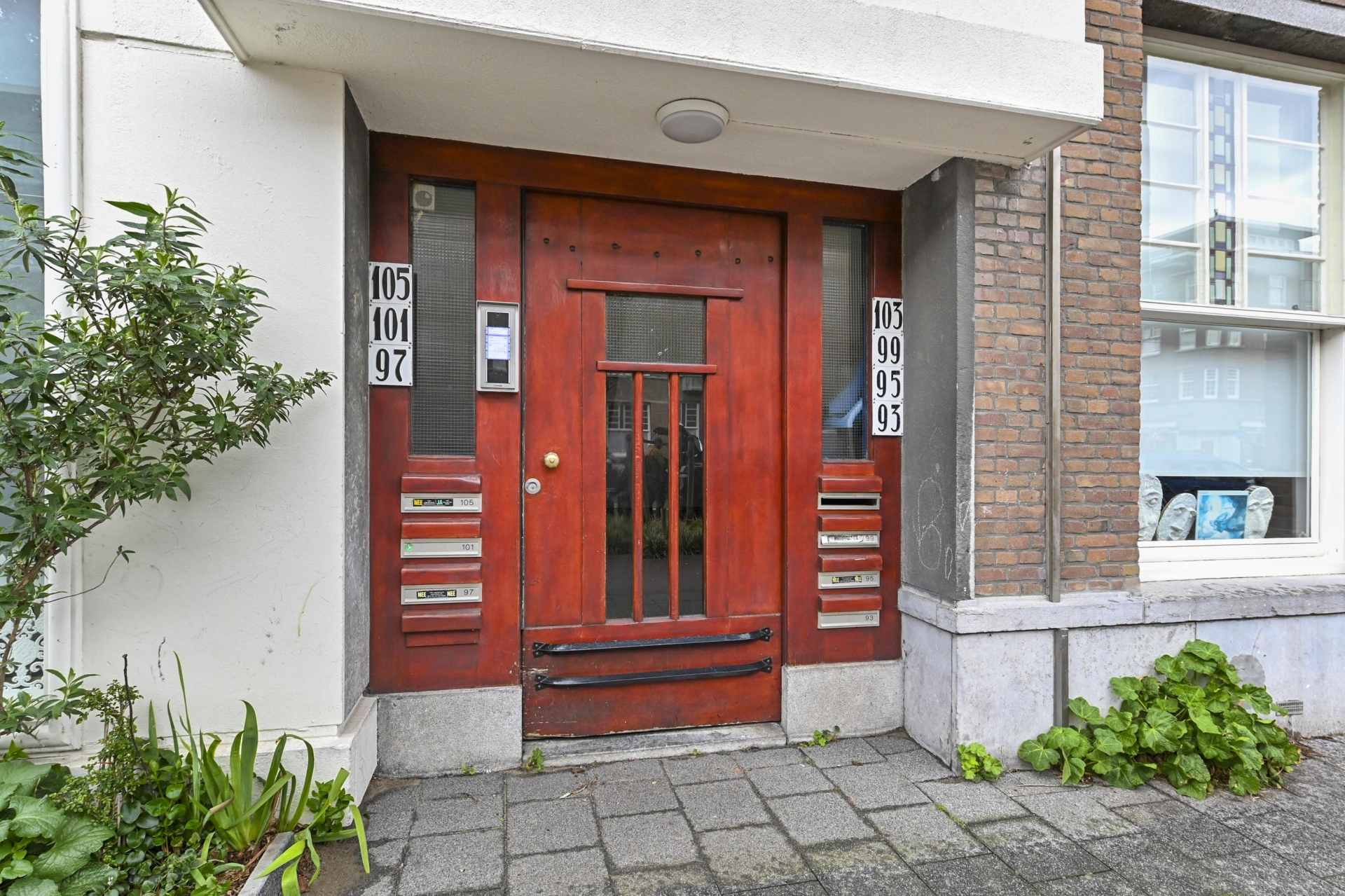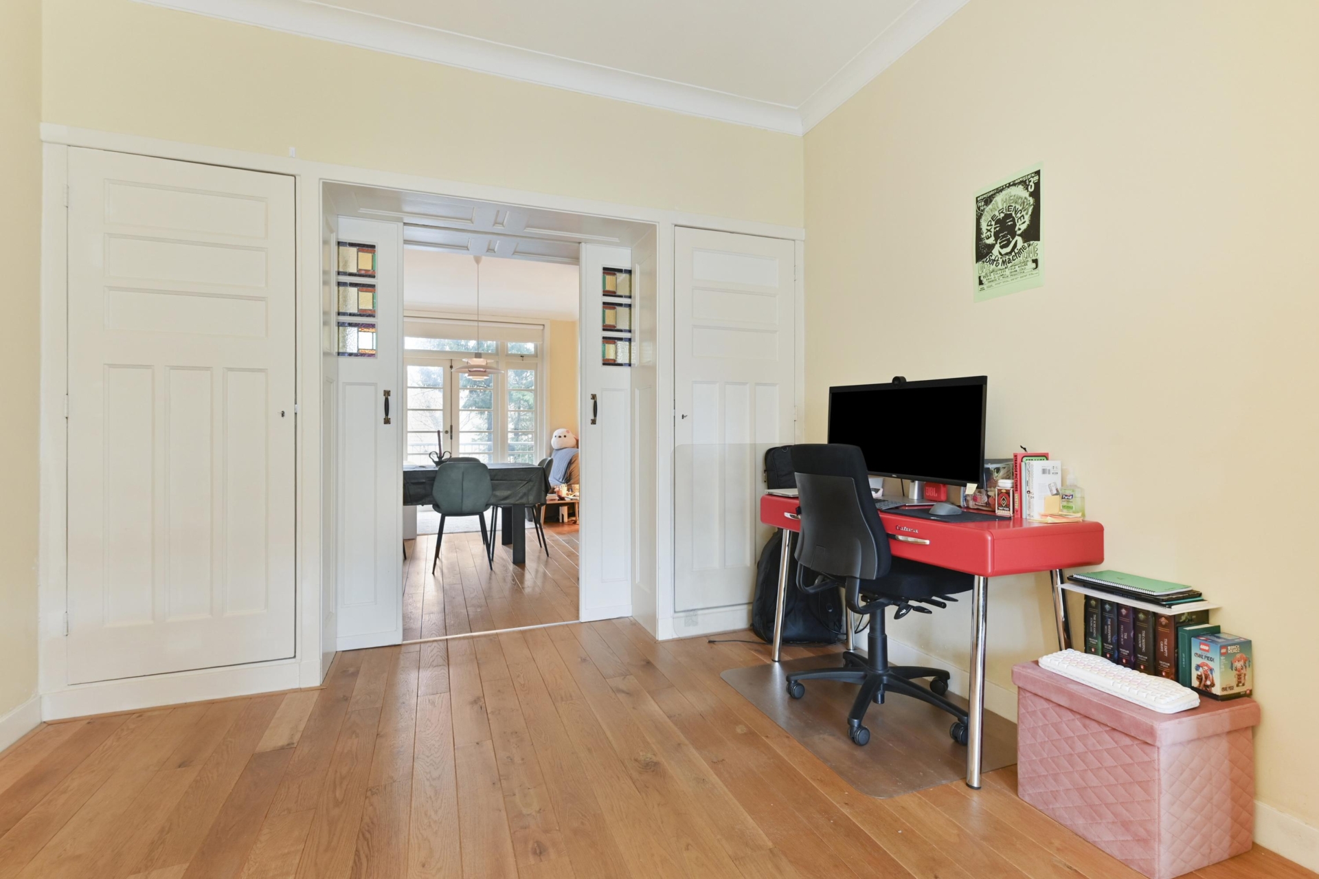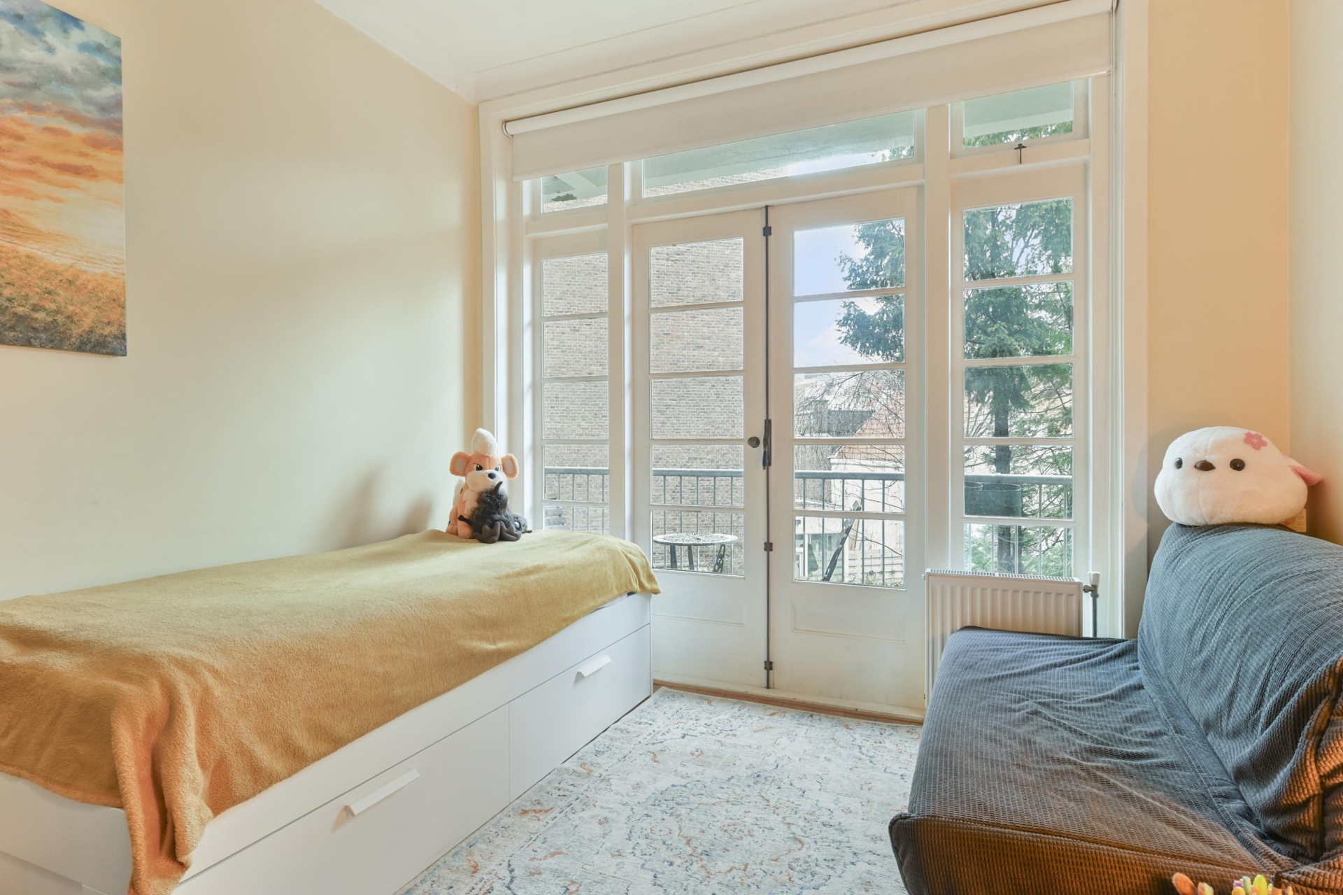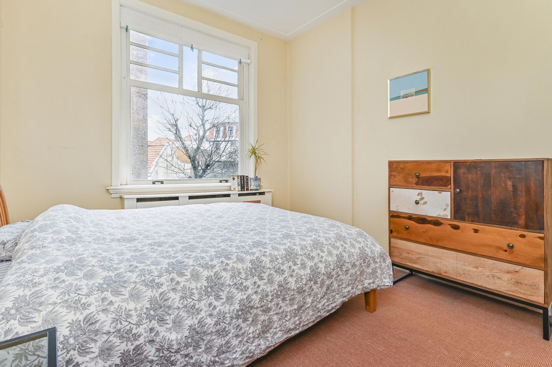 This charming apartment of approximately 93 m² with four rooms (two bedrooms) still features many authentic details, such as stained-glass windows, original en-suite sliding doors with built-in cabinets, and a pleasant balcony, while the city centre of The Hague is within walking distance.