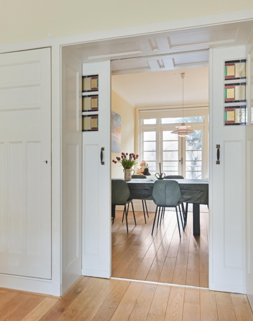 – veel originele details behouden (glas-in-lood, en-suite schuifdeuren, houtwerk);