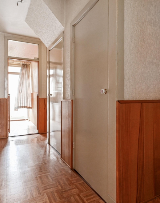 Je komt de woning via een Haagse portiektrap binnen op de 1e etage door de eigen buitendeur.
