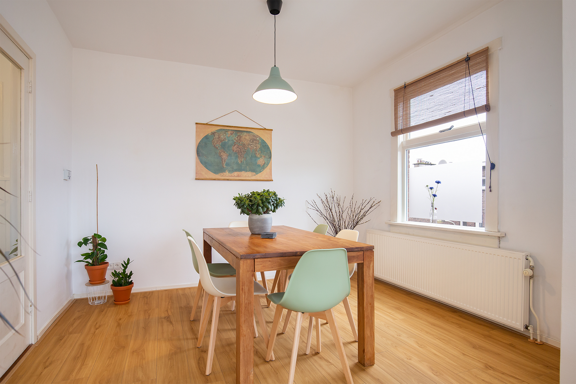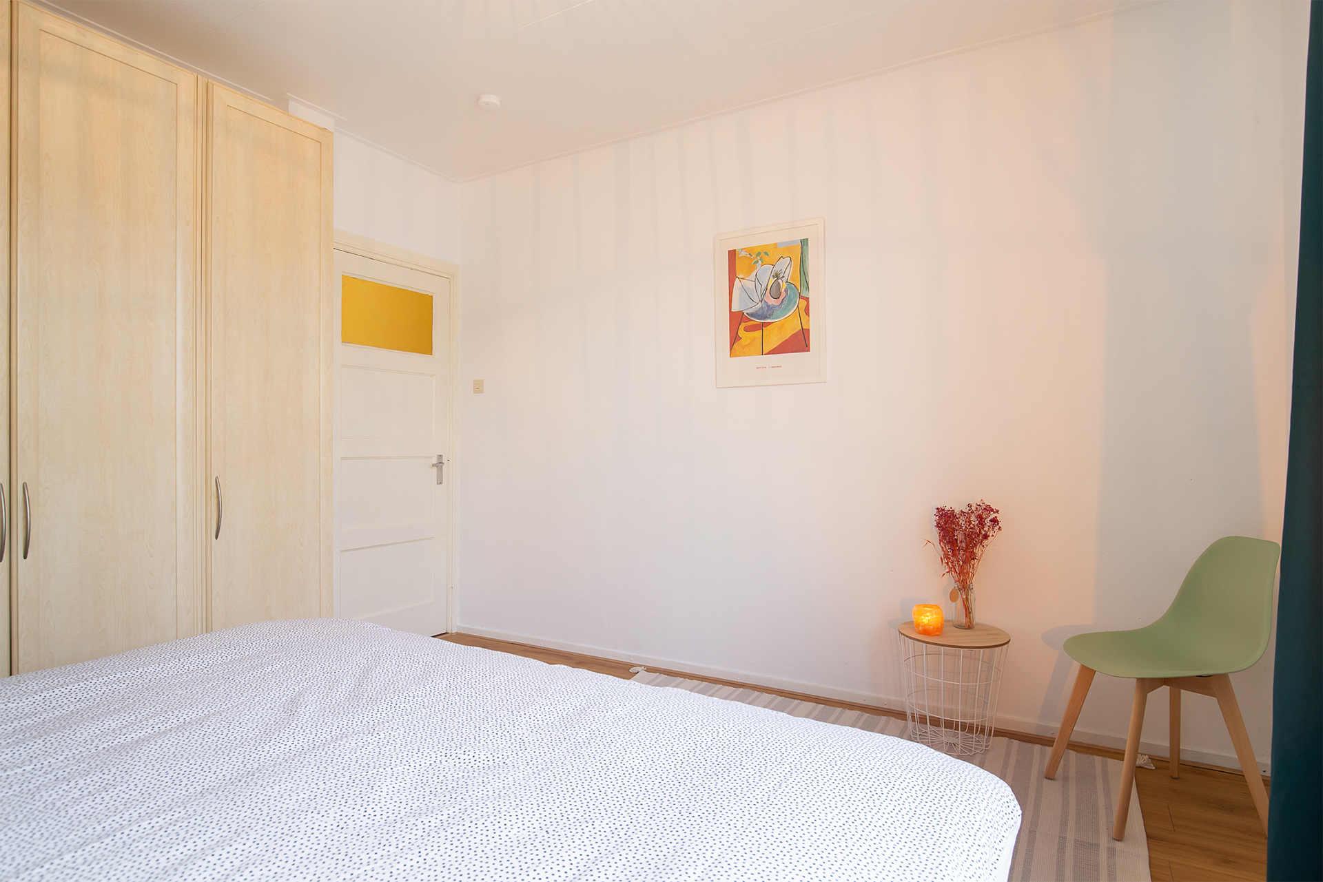 Through the characteristic The Hague-style portico you enter the apartment and step into the spacious hall with a meter cupboard. From here, an internal staircase leads you up to the 2nd floor.