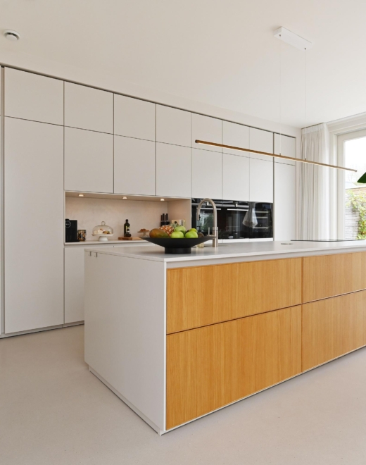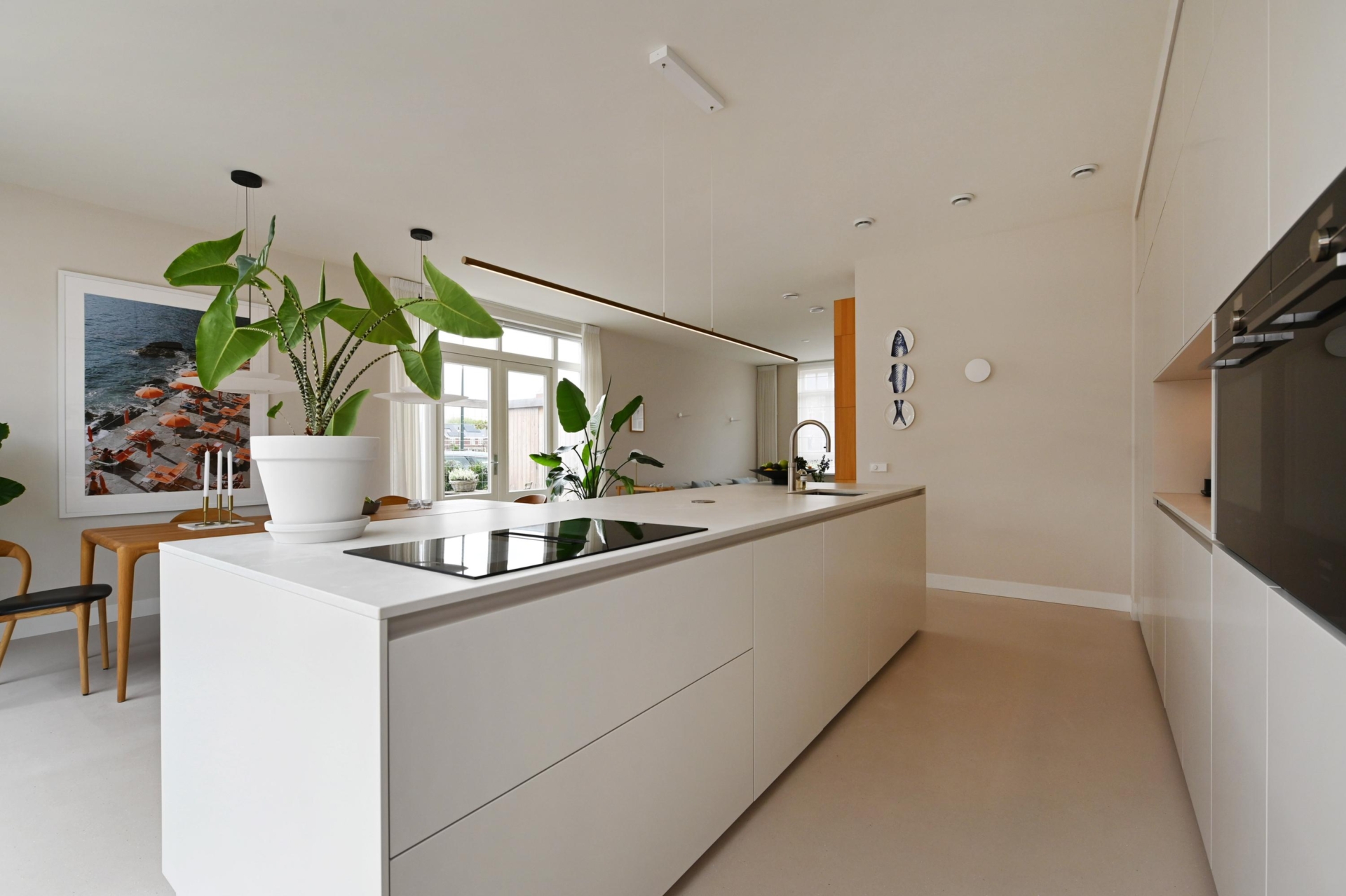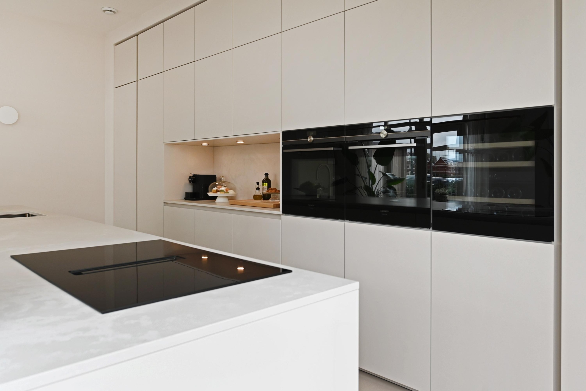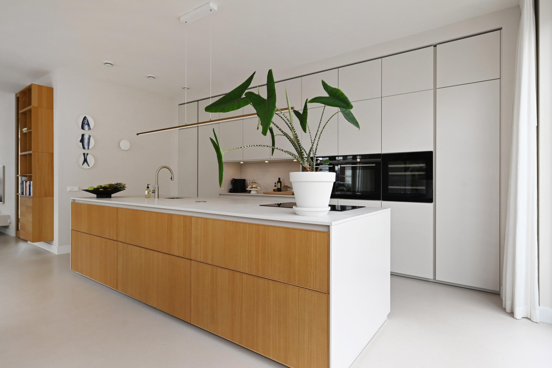 De open keuken is een waar droomobject voor elke kookliefhebber. Deze schitterende keuken van het kwaliteitsmerk 125next heeft een indrukwekkend kookeiland, eiken fronten en een aanrechtblad van composiet (Jetstone). De keuken is uitgerust met hoogwaardige apparatuur van Siemens, waaronder een grote inductiekookplaat met geïntegreerde afzuiging, twee ovens waarvan één met magnetronfunctie, een Quooker en extra ruime koel- en vrieskasten. De wijnkoelkast maakt de keuken compleet en is van het merk Dunavox. Hier wordt koken een ware beleving.