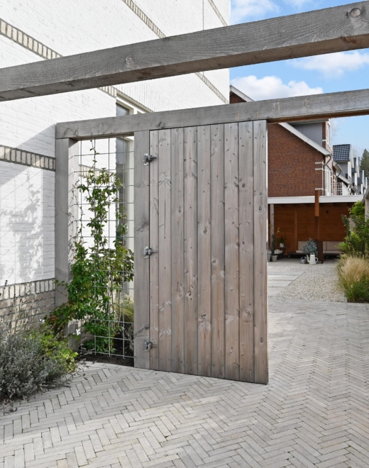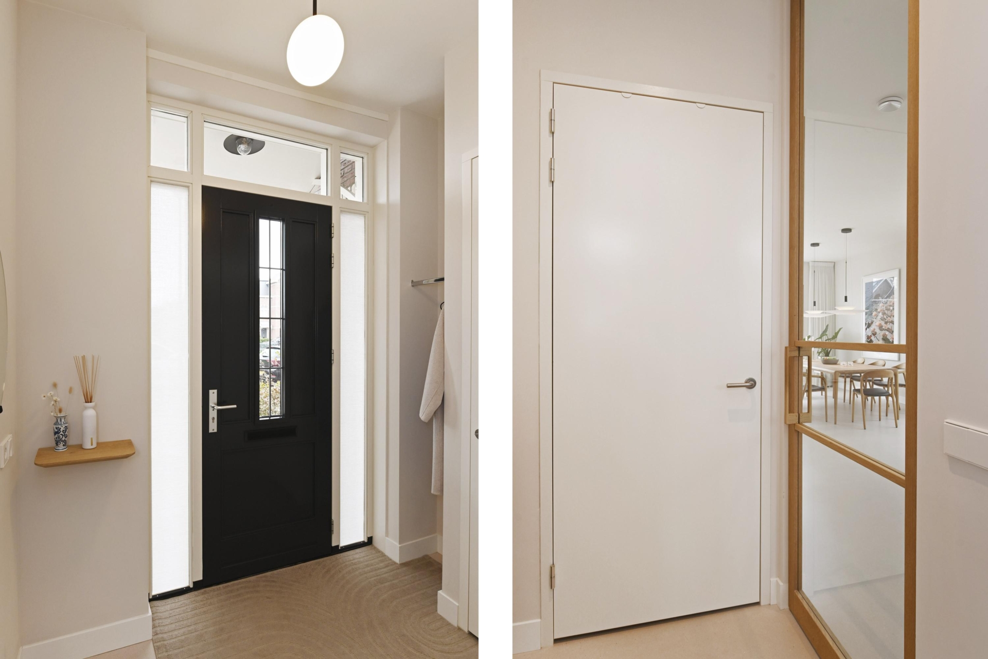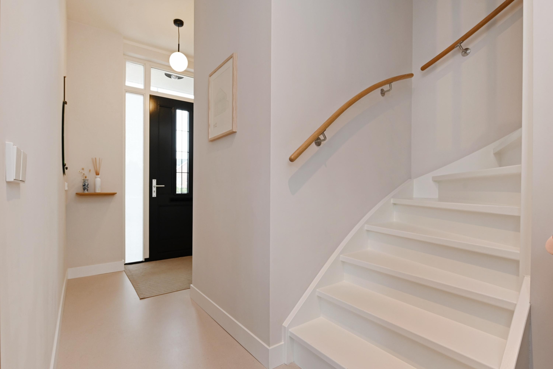 Via de verzorgde voortuin, met een gezellig zitje, bereik je de entree van de woning. Op eigen terrein is ruimte voor maar liefst drie auto’s en er is een laadpaal aanwezig. In de hal bevinden zich een modern toilet met fontein en een ruime bergruimte met de warmtepomp en een royale boiler van 400 liter.