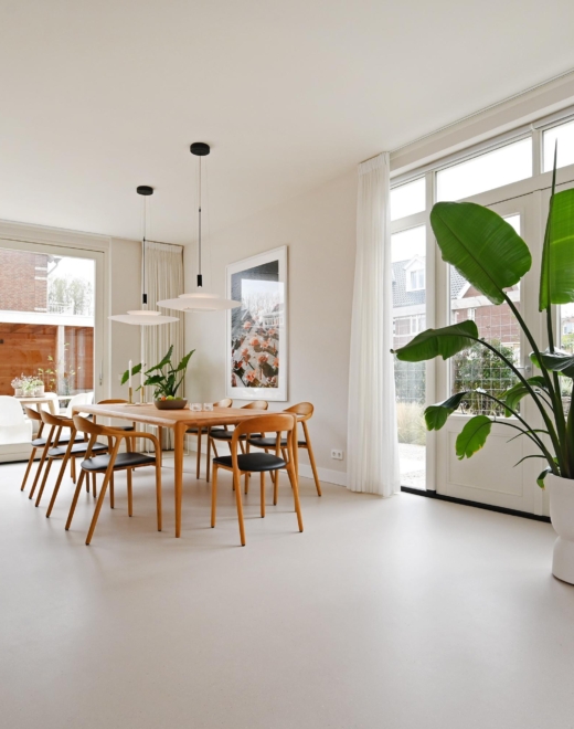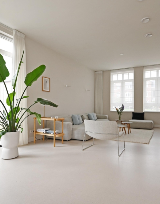 – Prachtige gietvloer met subtiele “Terazzolook” op de begane grond, op de 1e en 2e etage een fraaie visgraat-pvc-vloer;