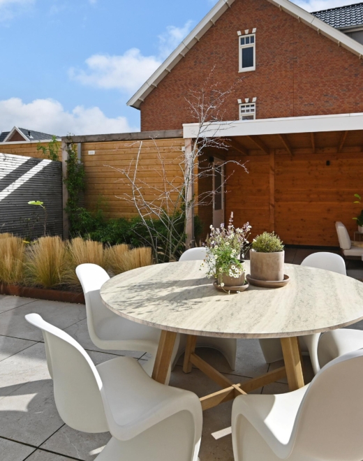 De riante tuin rondom, met een zonnige achtertuin op het zuiden, nodigt uit om samen te genieten, buiten te eten met vrienden of de kinderen te zien spelen.