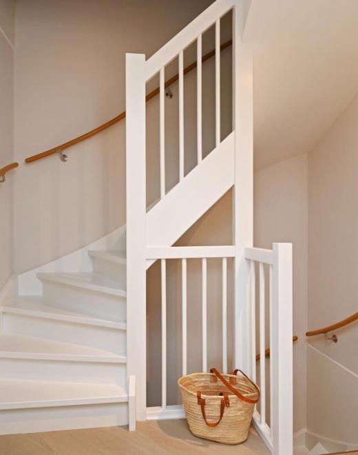 The first floor features a spacious landing with access to three bedrooms and a bathroom. At the front, you’ll find a bright bedroom, while on the corner there’s a generous, light-filled room with elegant built-in wardrobes.
