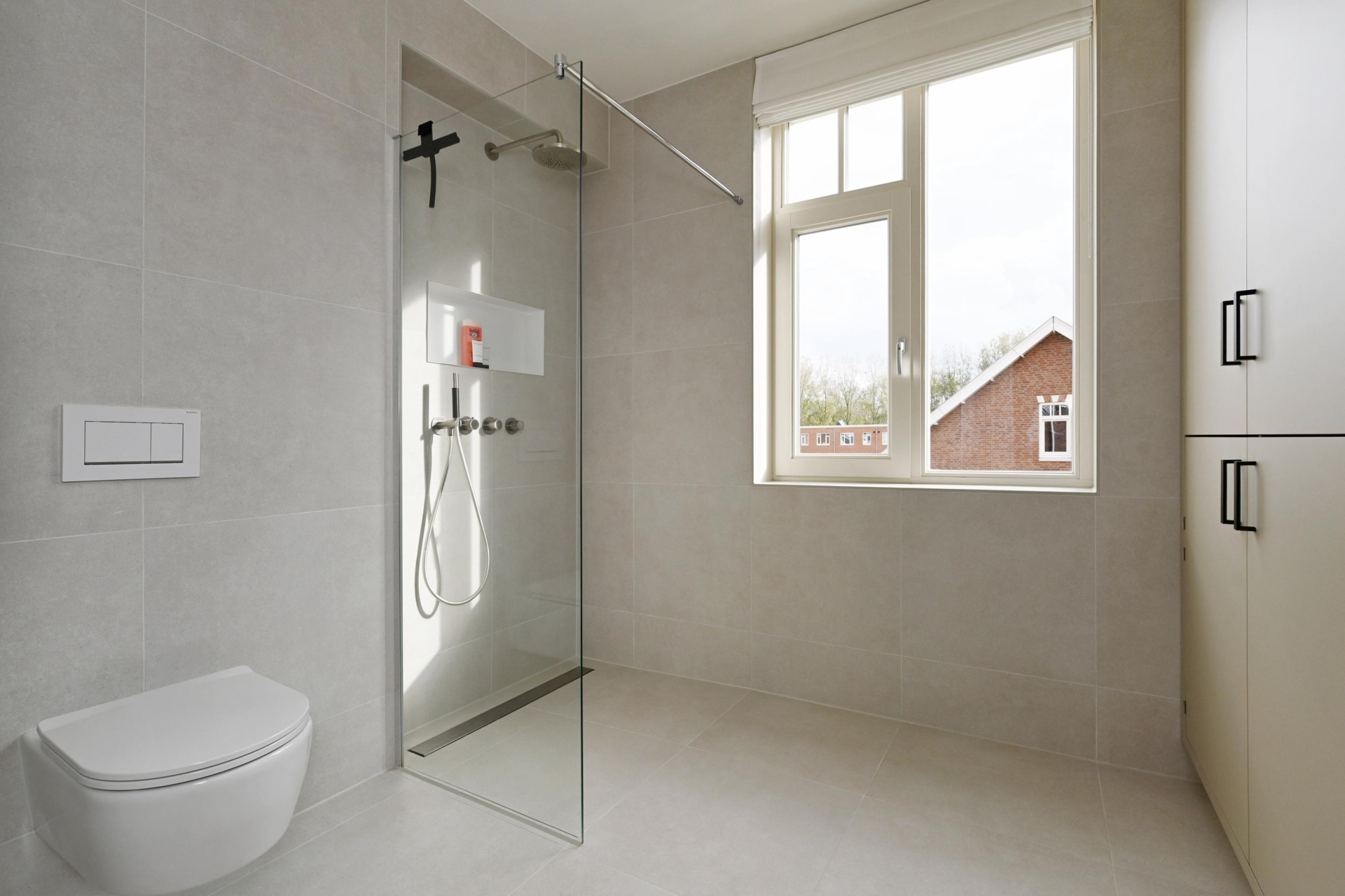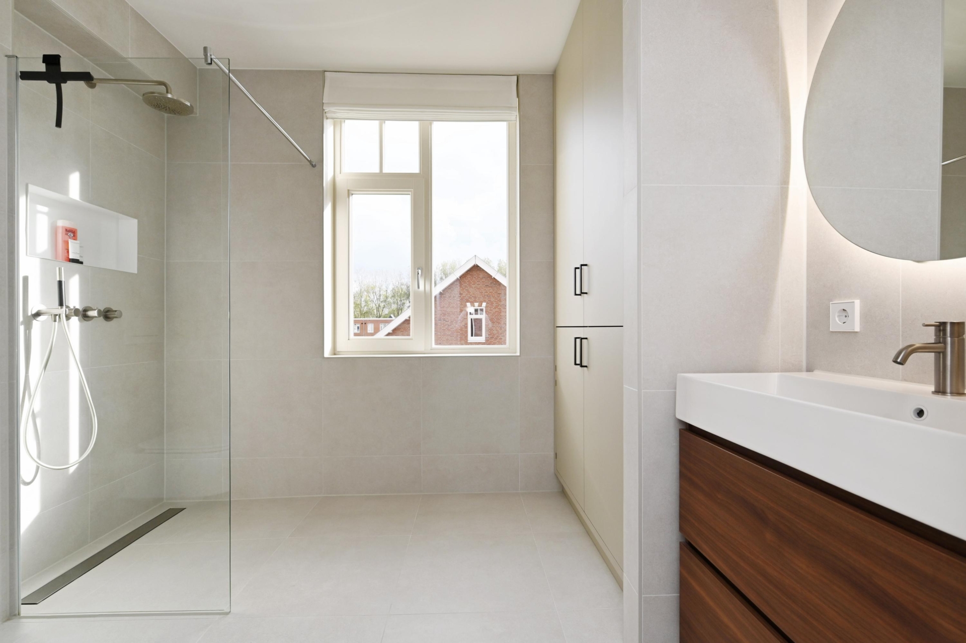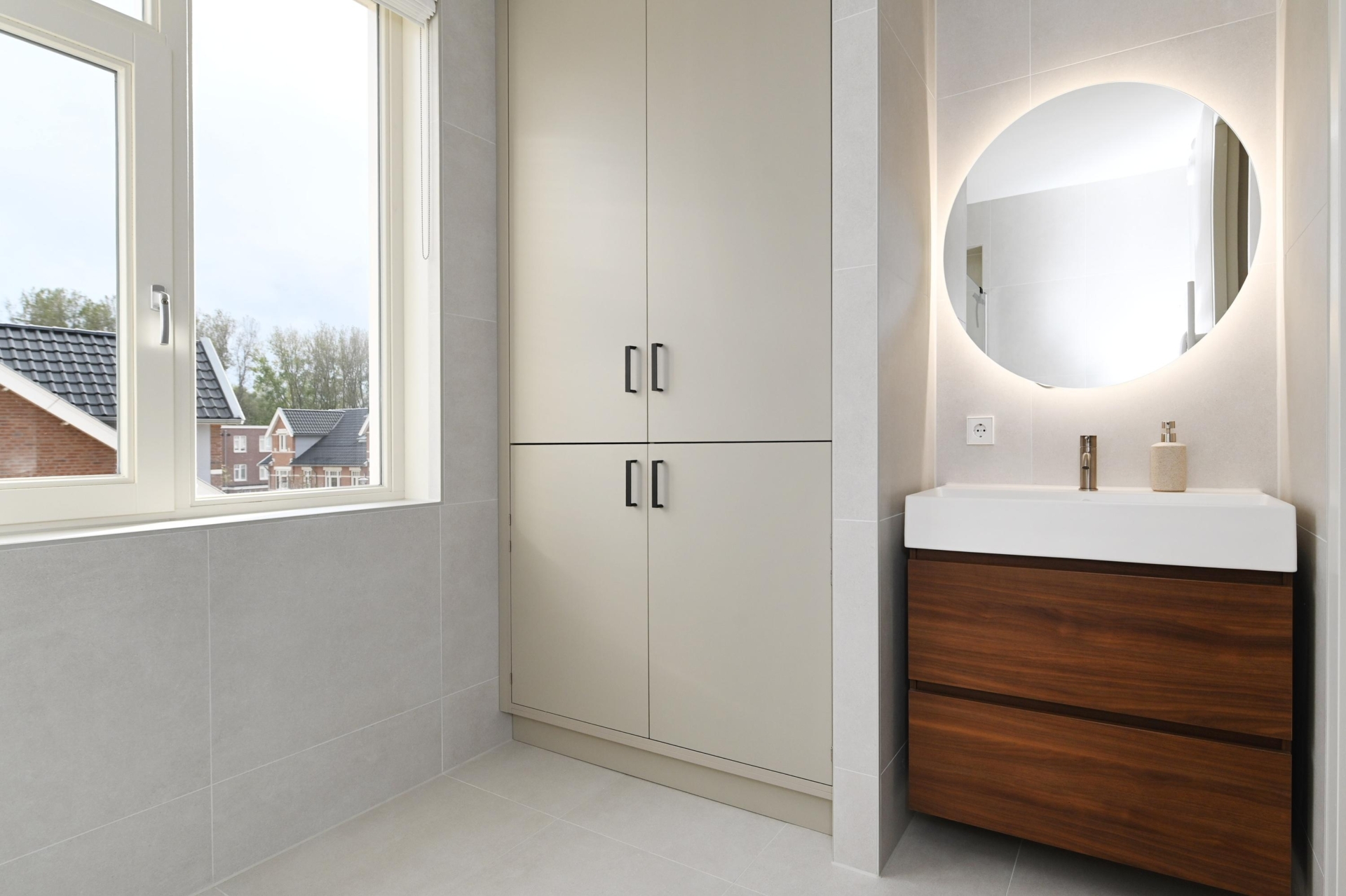 De 2e verdieping biedt nog meer wooncomfort. Op de overloop vind je een berging met de omvormer voor de zonnepanelen en de wtw-installatie. Daarnaast is hier een 2e luxe badkamer te vinden met een inloopdouche, vaste wastafel, toilet, radiator en een praktische mooie ingebouwde kast met de wasmachine- en drogeraansluiting.