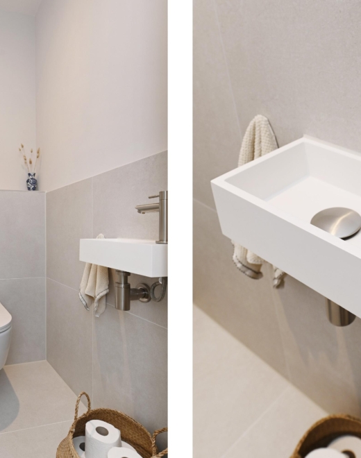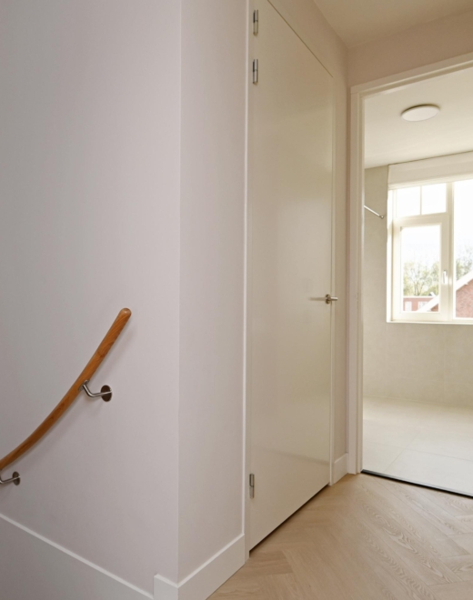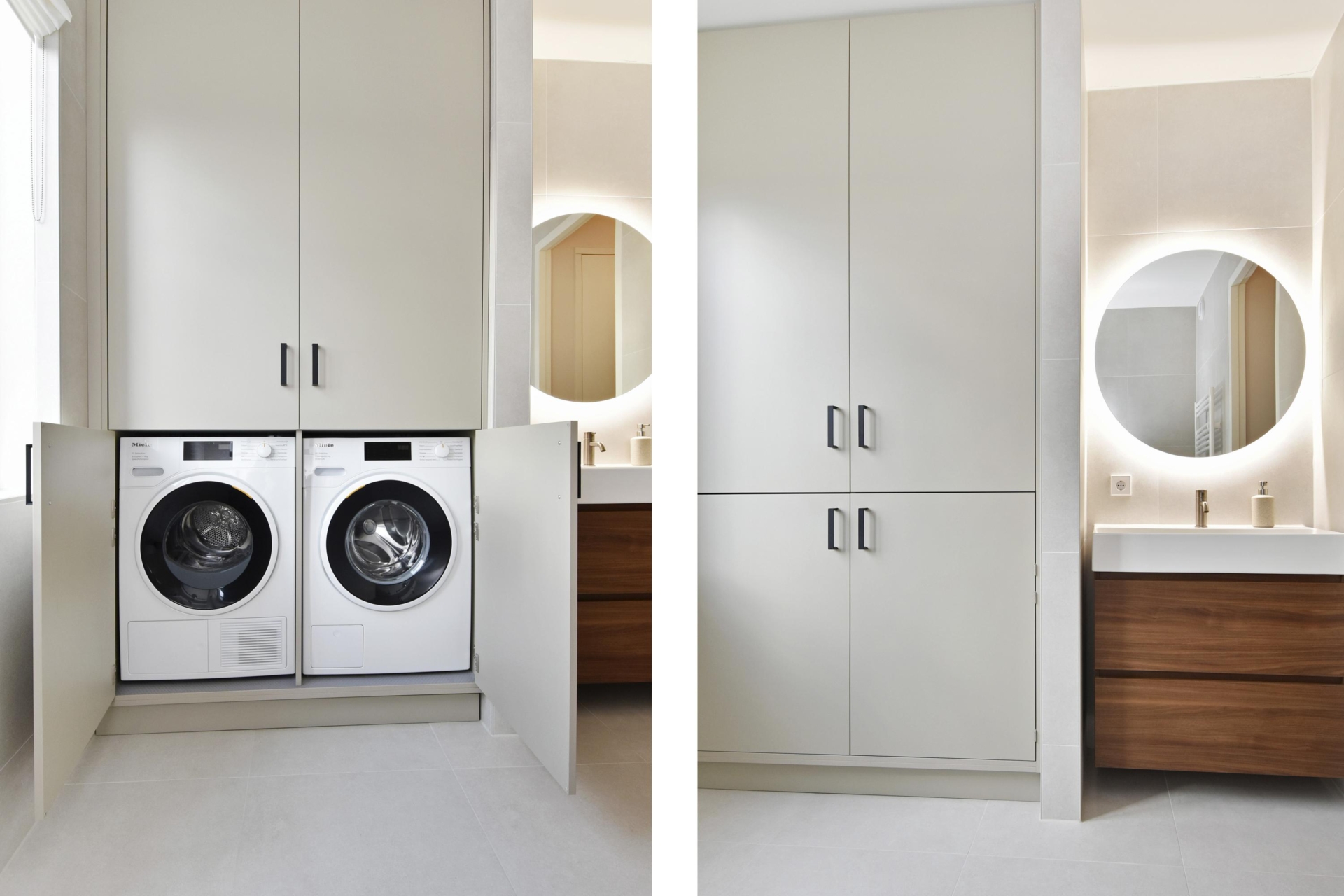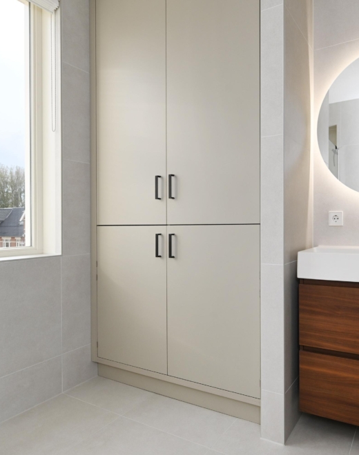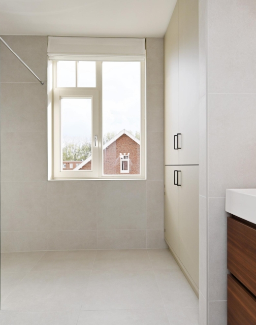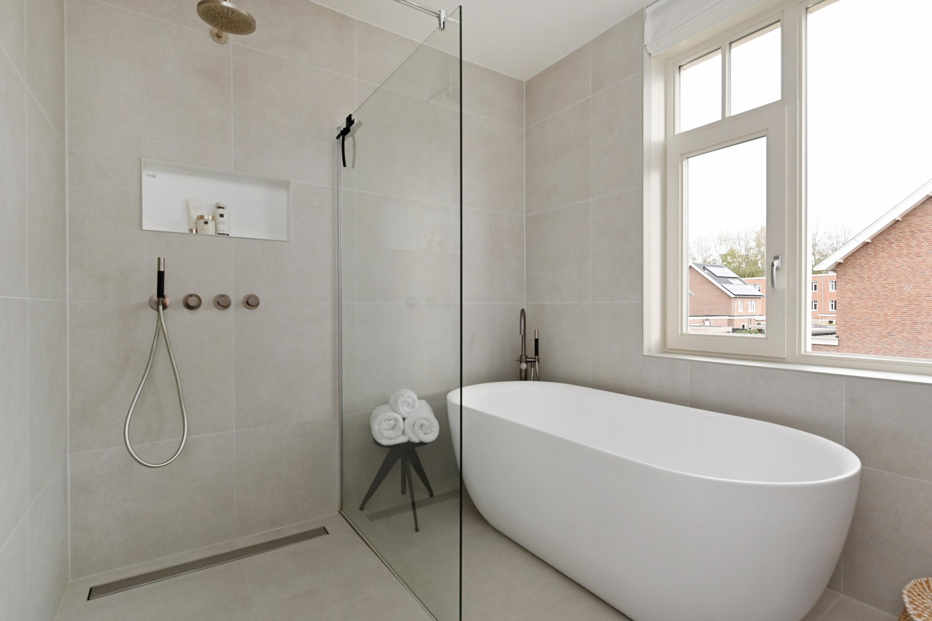 De 2e verdieping biedt nog meer wooncomfort. Op de overloop vind je een berging met de omvormer voor de zonnepanelen en de wtw-installatie. Daarnaast is hier een 2e luxe badkamer te vinden met een inloopdouche, vaste wastafel, toilet, radiator en een praktische mooie ingebouwde kast met de wasmachine- en drogeraansluiting.