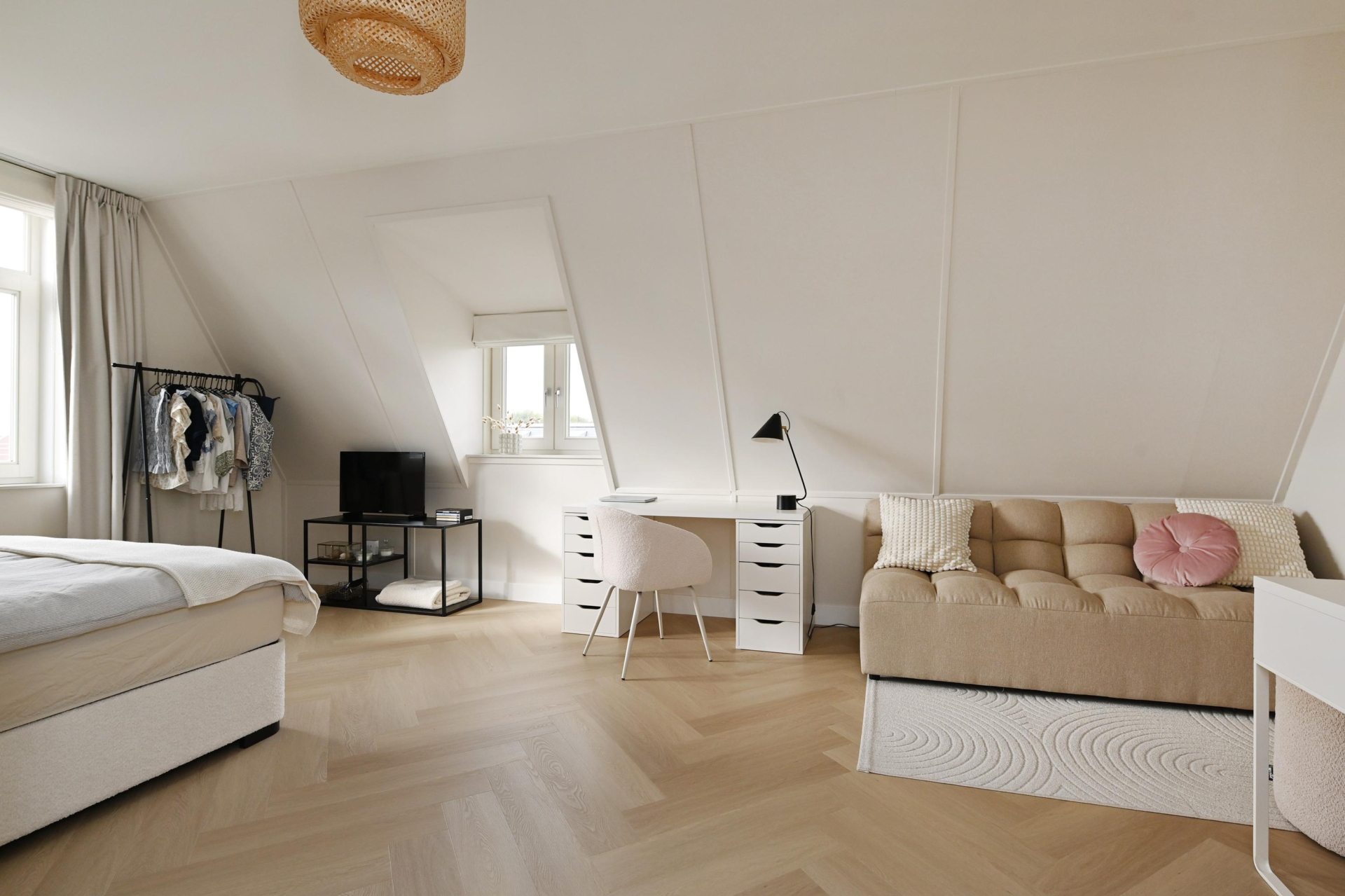 Verder zijn er twee grote slaapkamers: een riante kamer aan de achterzijde en een lichte, brede kamer op de hoek. Beide kamers zijn ruim van opzet en bieden volop mogelijkheden als slaap-, werk- of hobbyruimte.