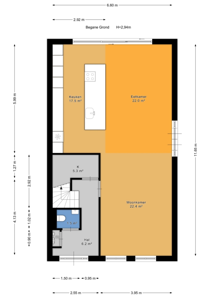 – Betreft het XL woning type extra breed 6,60m en hoog plafond (ca. 3 m) op de begane grond;