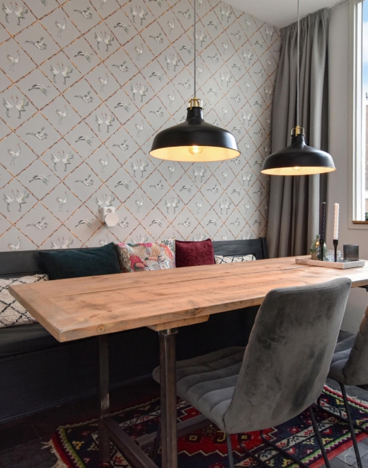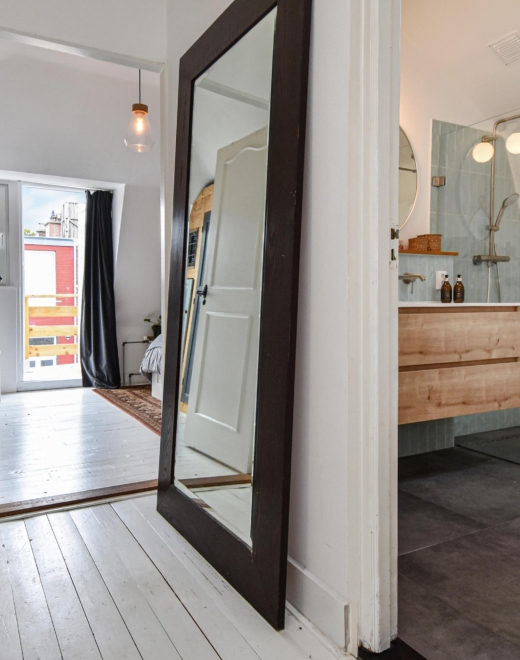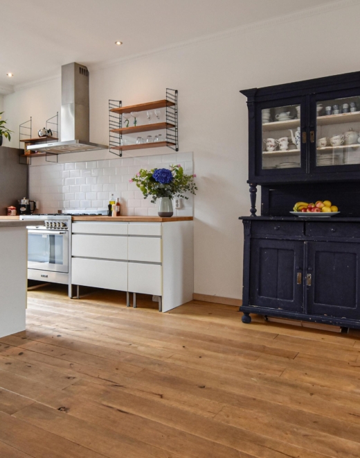 De lichte woon-/eetkamer met open keuken, de moderne badkamer, de fraaie vloeren en de authentieke uitstraling zorgen voor sfeer en stijl.