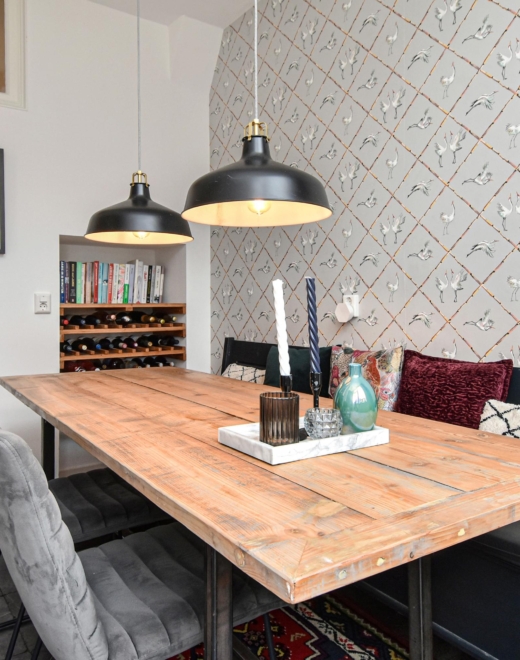 The front rooms have been combined to create a bright and generously sized living and dining area.