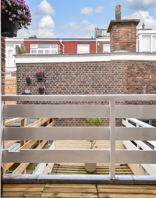 Aan de achterzijde bevindt zich nog een royale slaapkamer met inbouwkasten en toegang tot een tweede balkon.