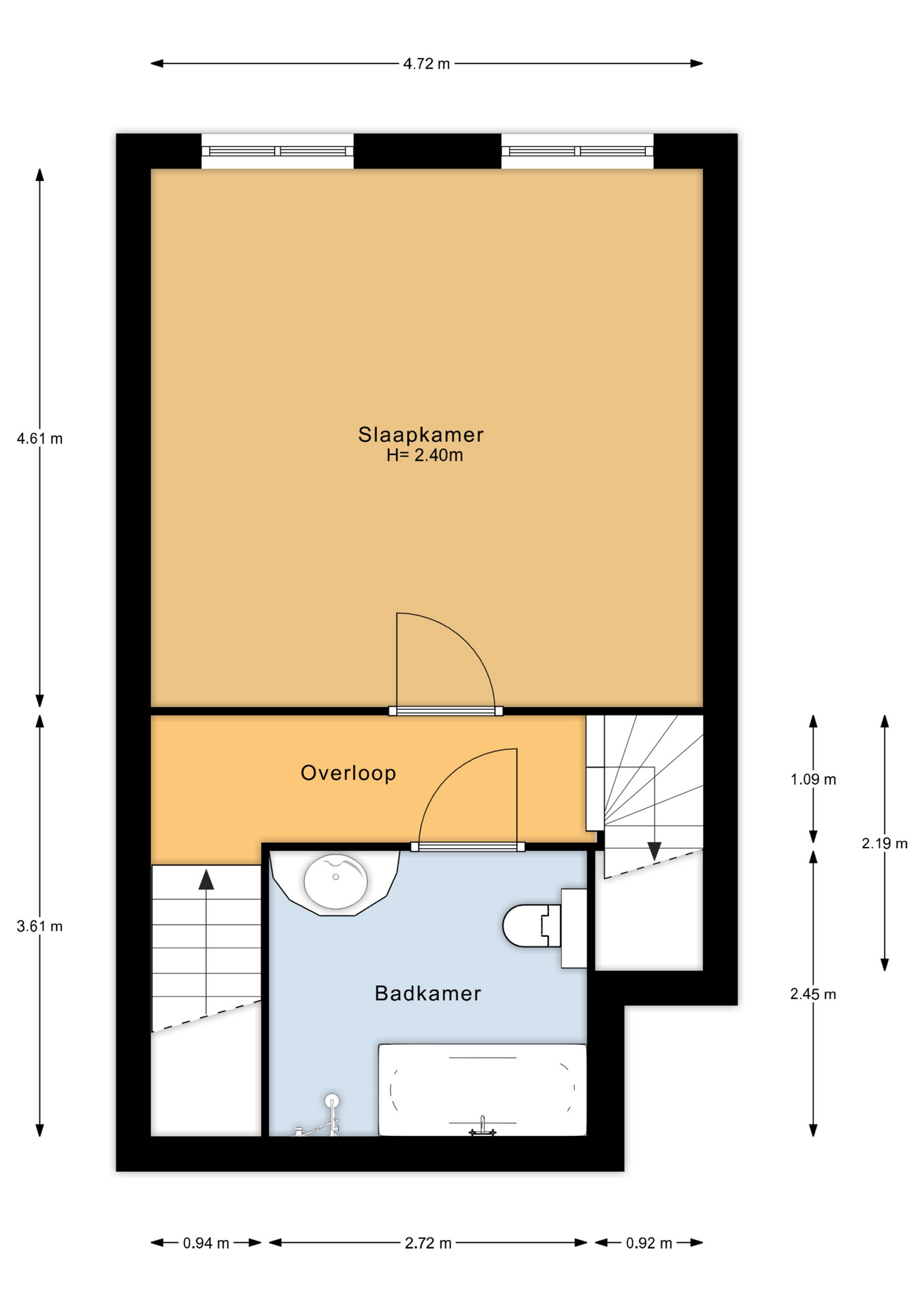 – de 3 etages zijn via een trappenhuis met elkaar verbonden;