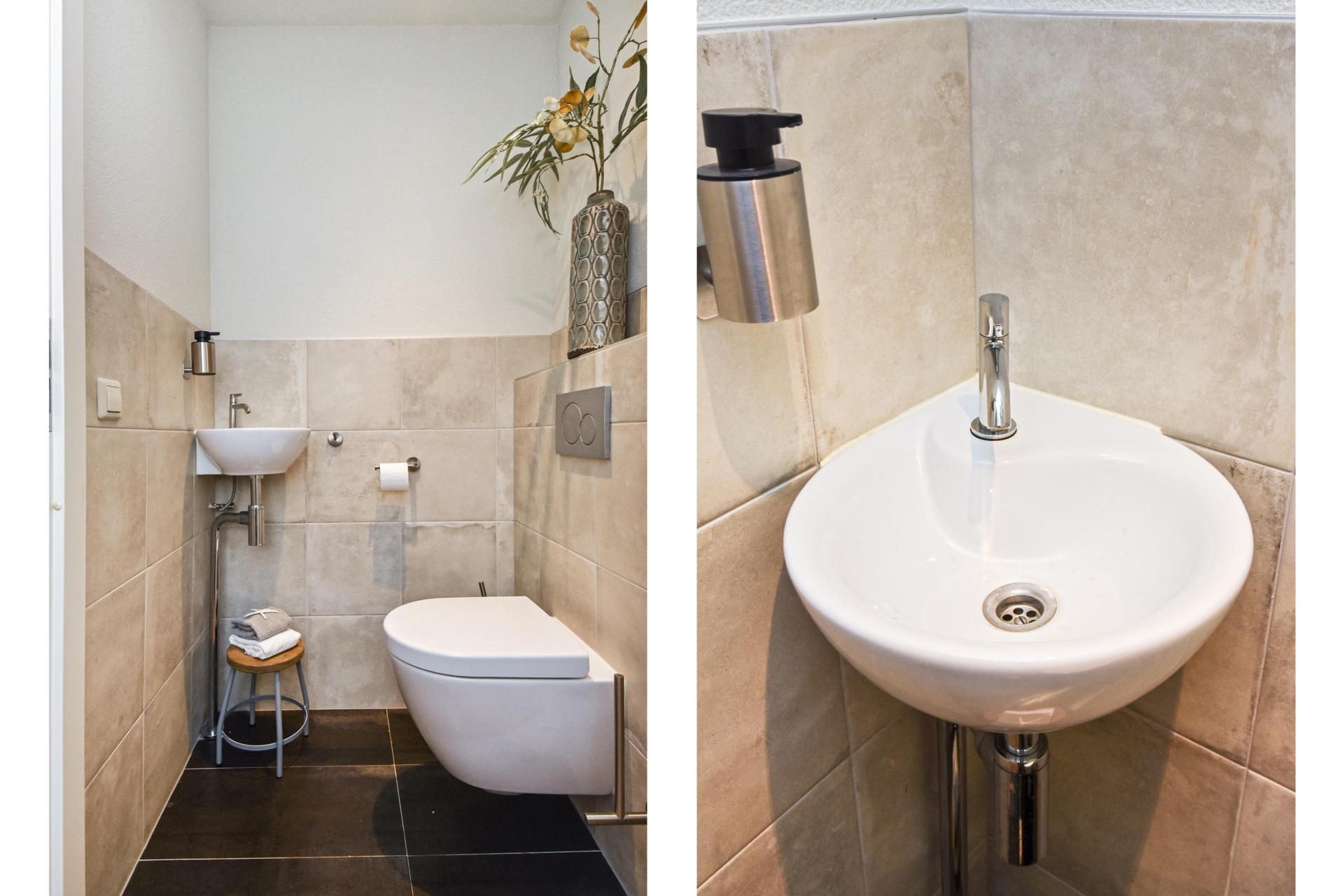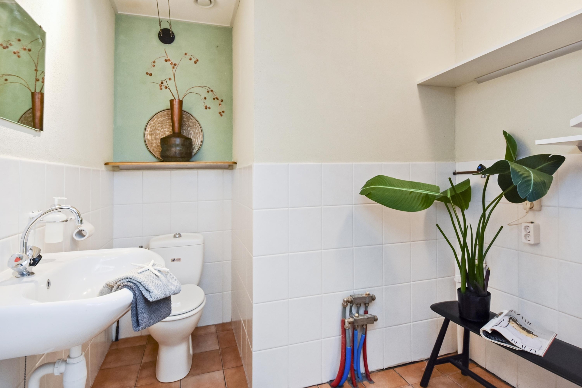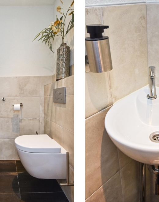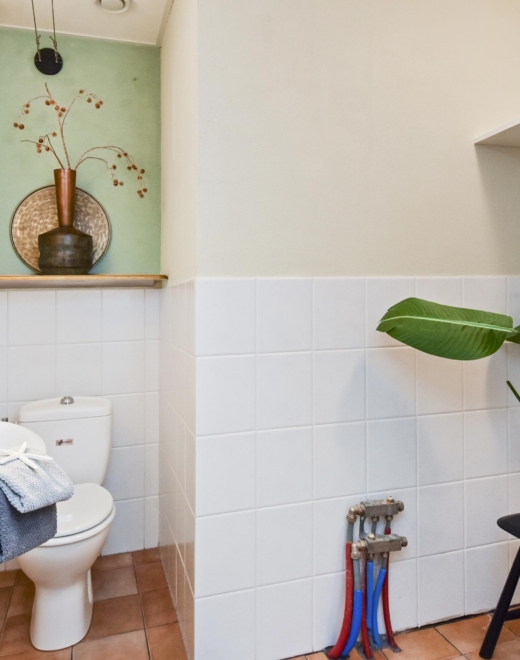Op de 2e etage kan je ook de woning binnen komen in een royale hal met betegeld toilet met fontein en diepe technische kast.