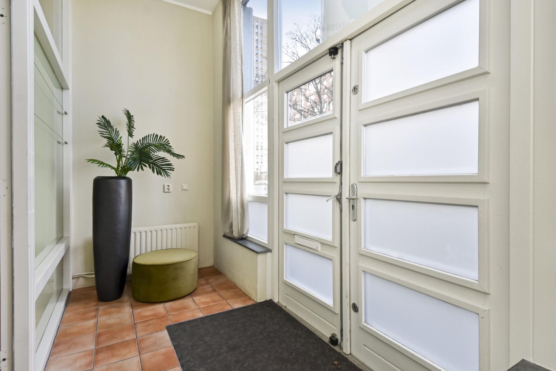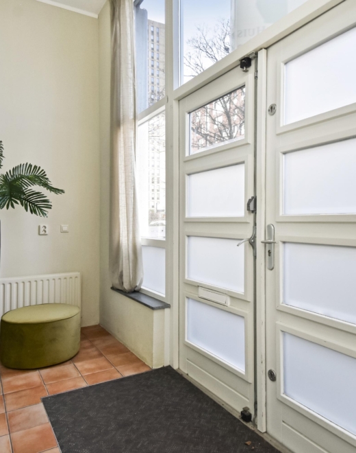 A particularly pleasant feature is the private entrance from Tripstraat, leading through the front garden directly into the ground floor. In addition, the property can be accessed via a secure communal entrance from Zamenhofstraat, with lift access to the second floor.