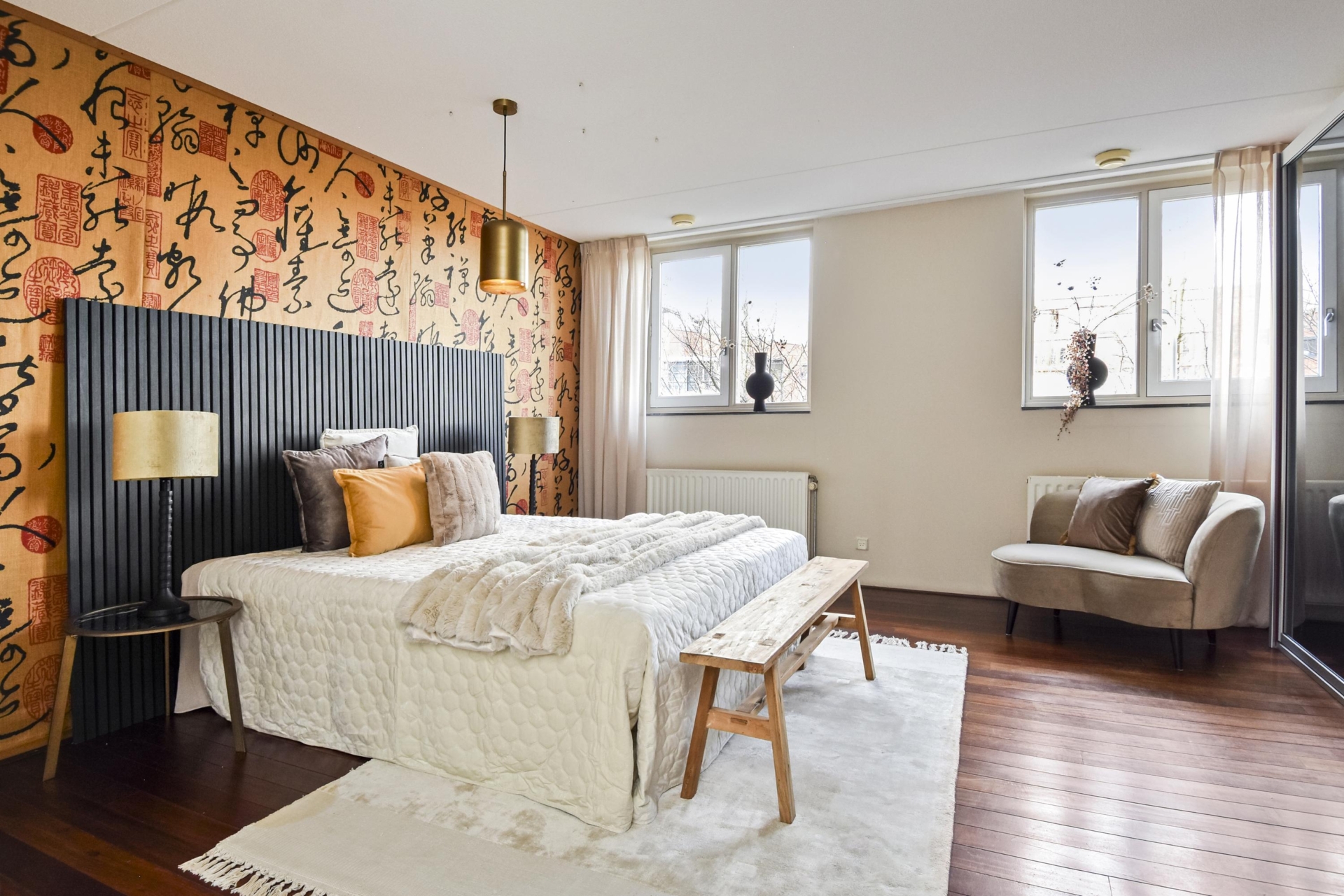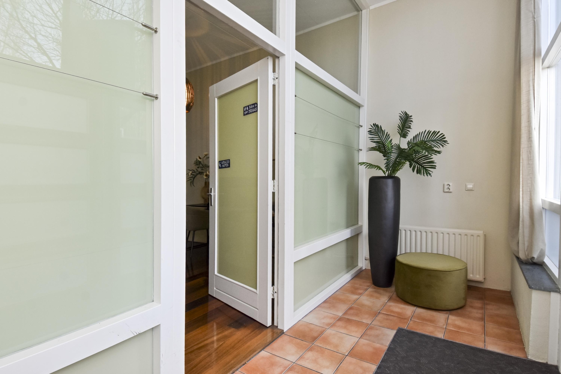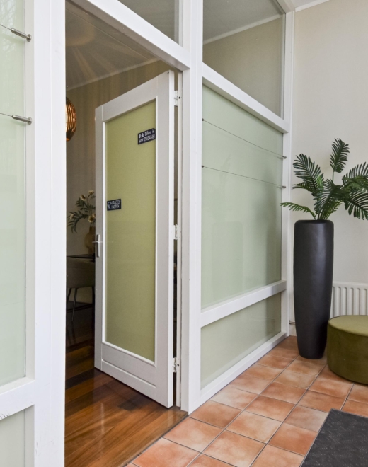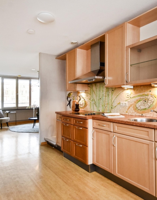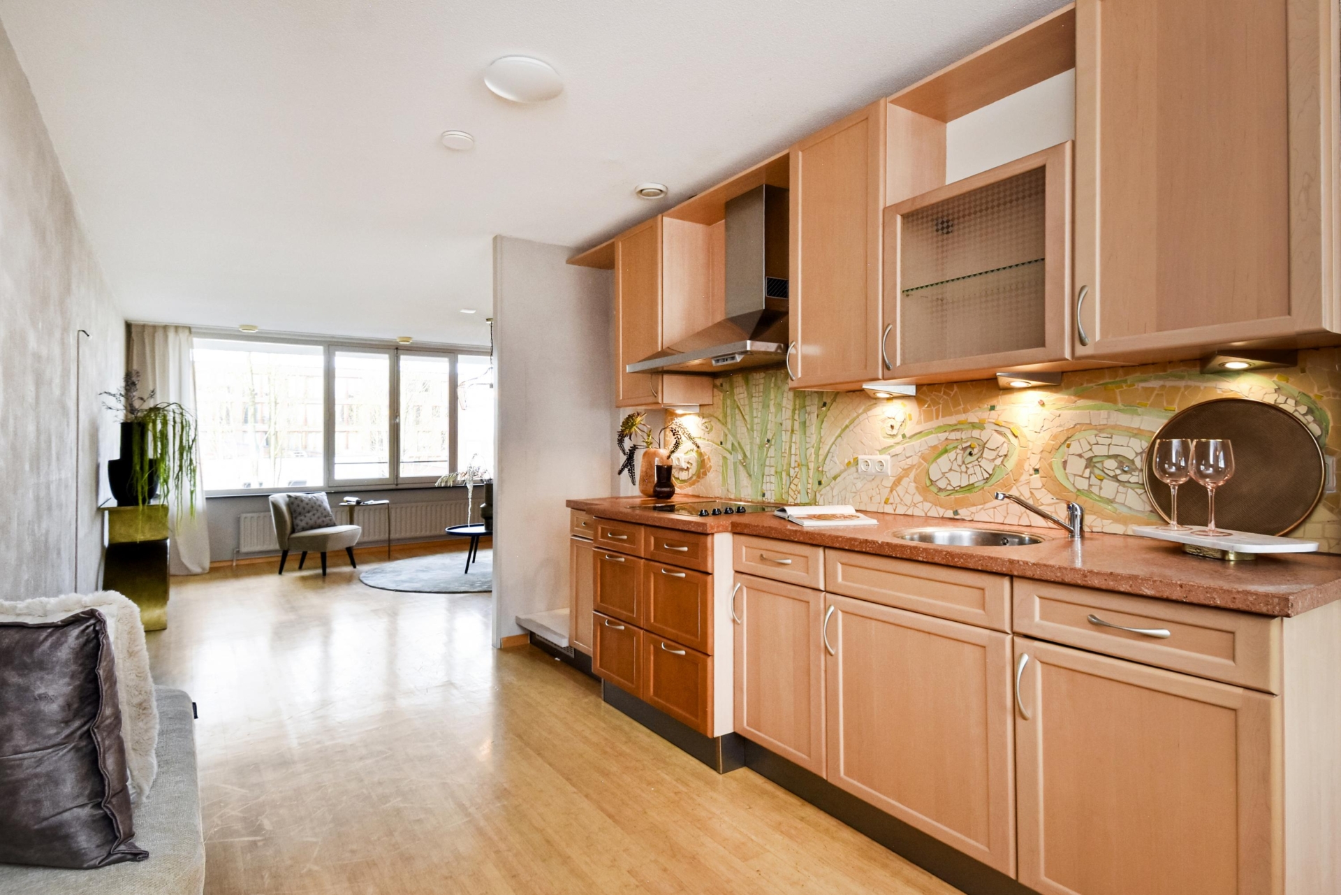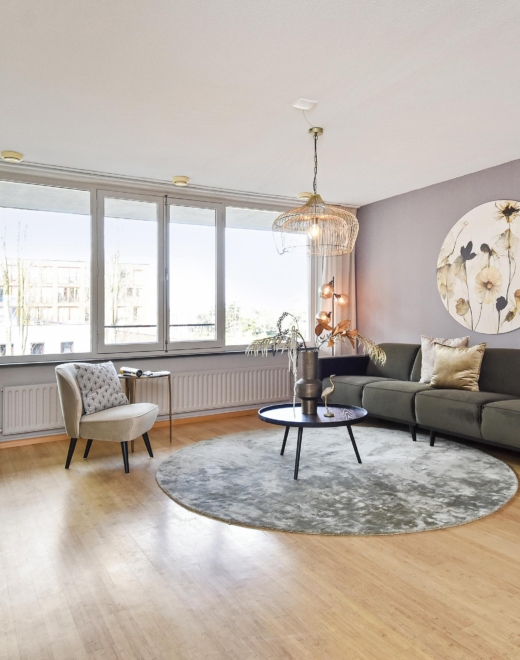 From here, you enter the living room, enjoying unobstructed views over the city park “De Verademing”.