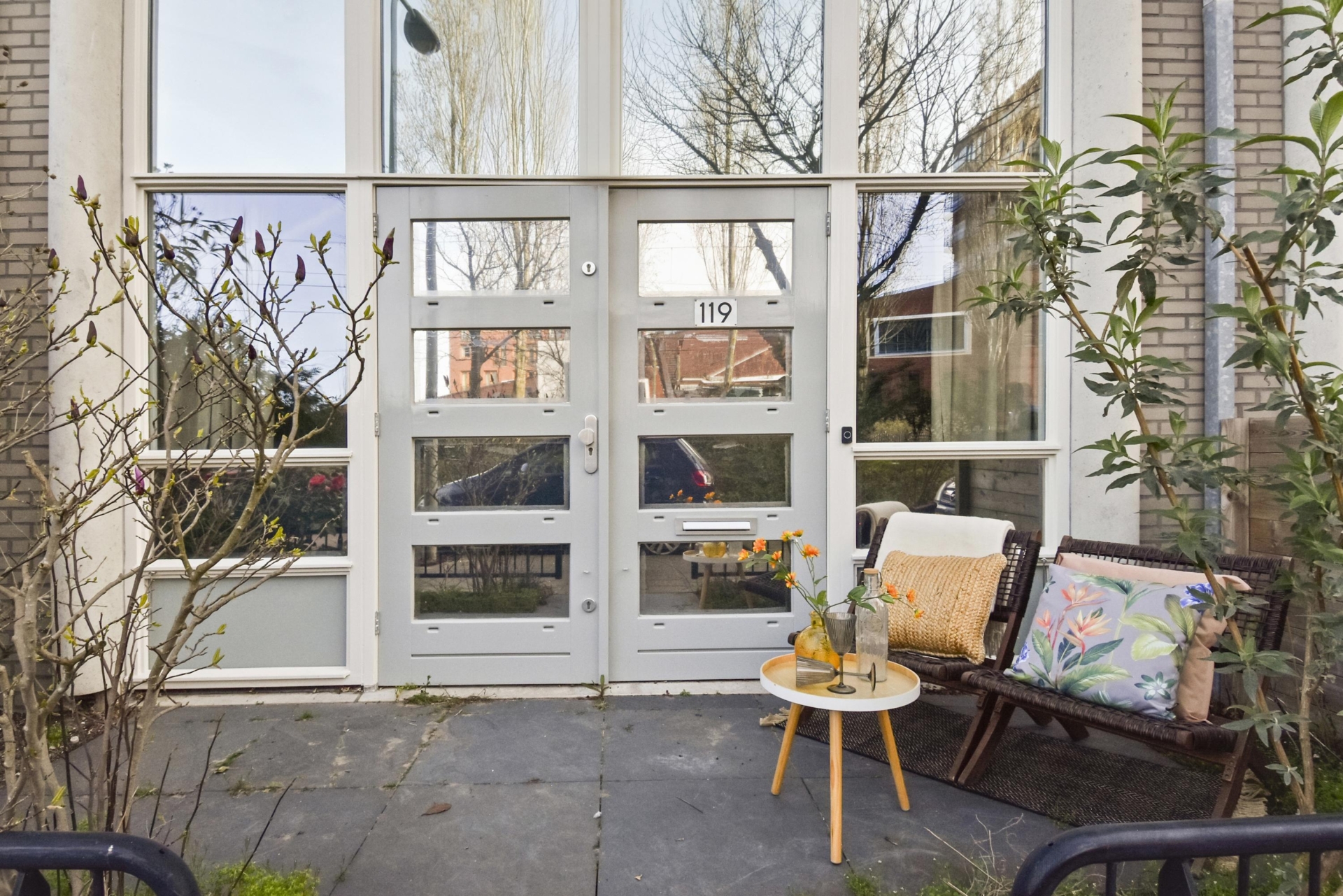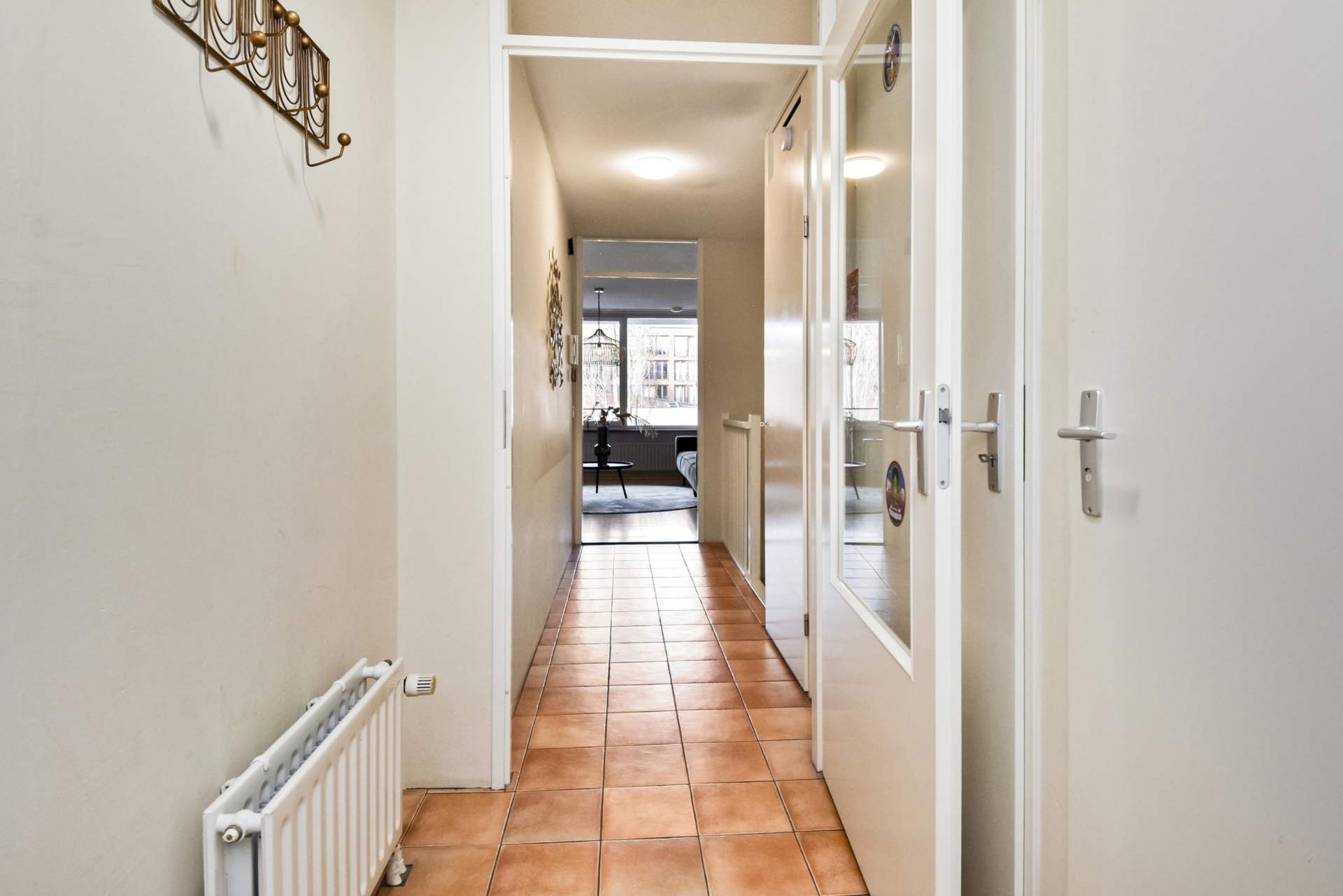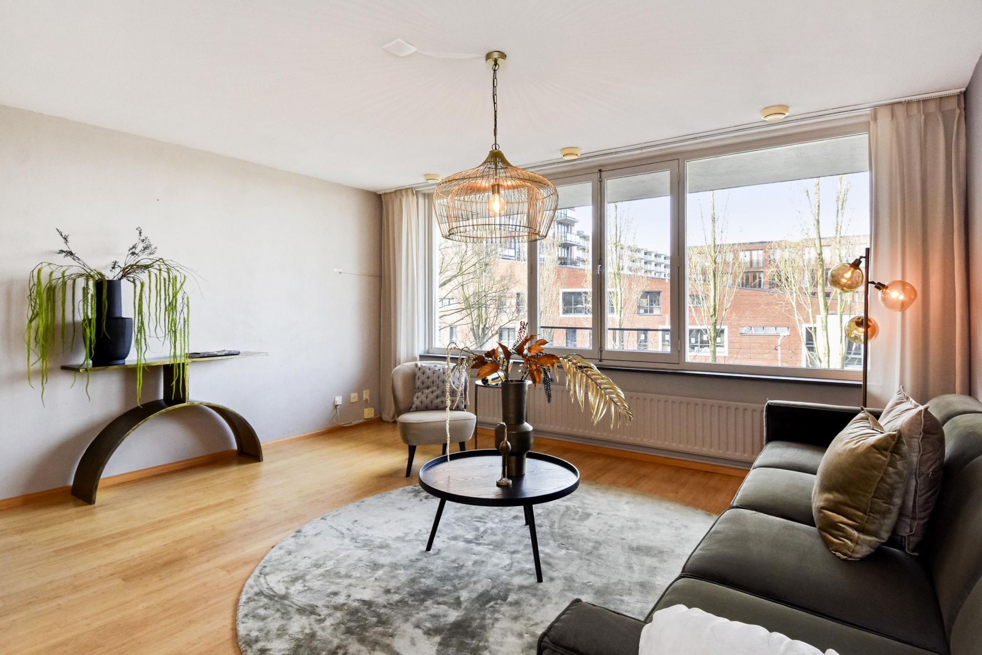 Vervolgens kom je in de woonkamer met vrij uitzicht naar het stadspark