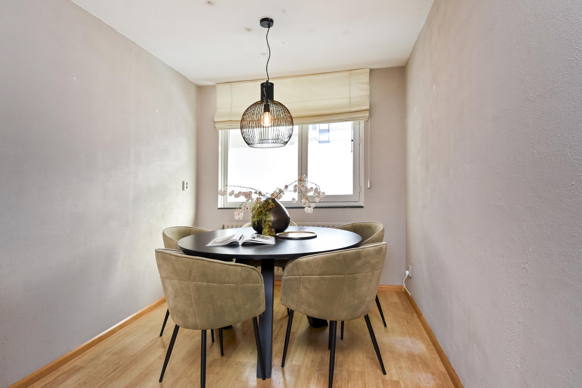 A cosy dining area is situated directly adjacent to the kitchen.
