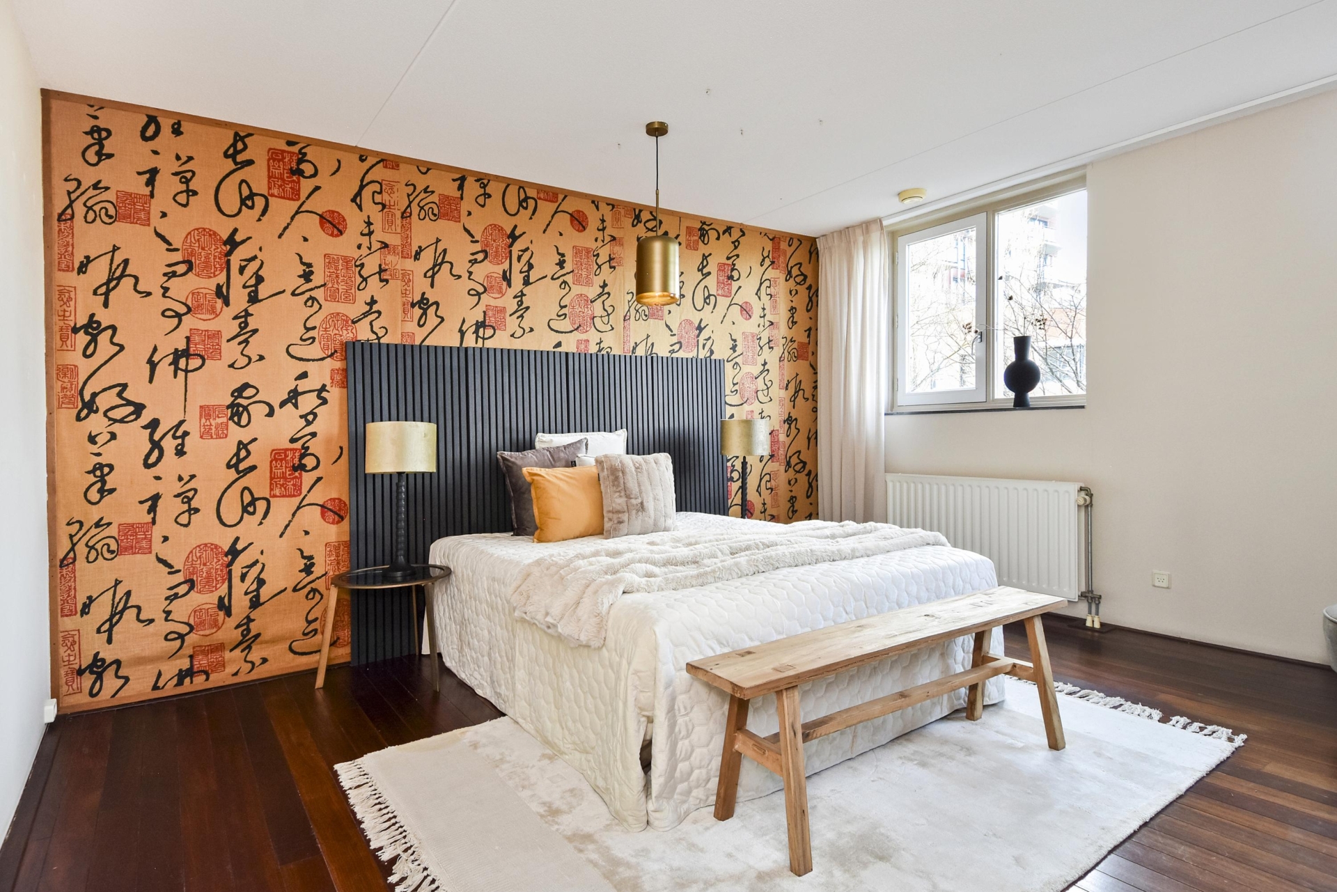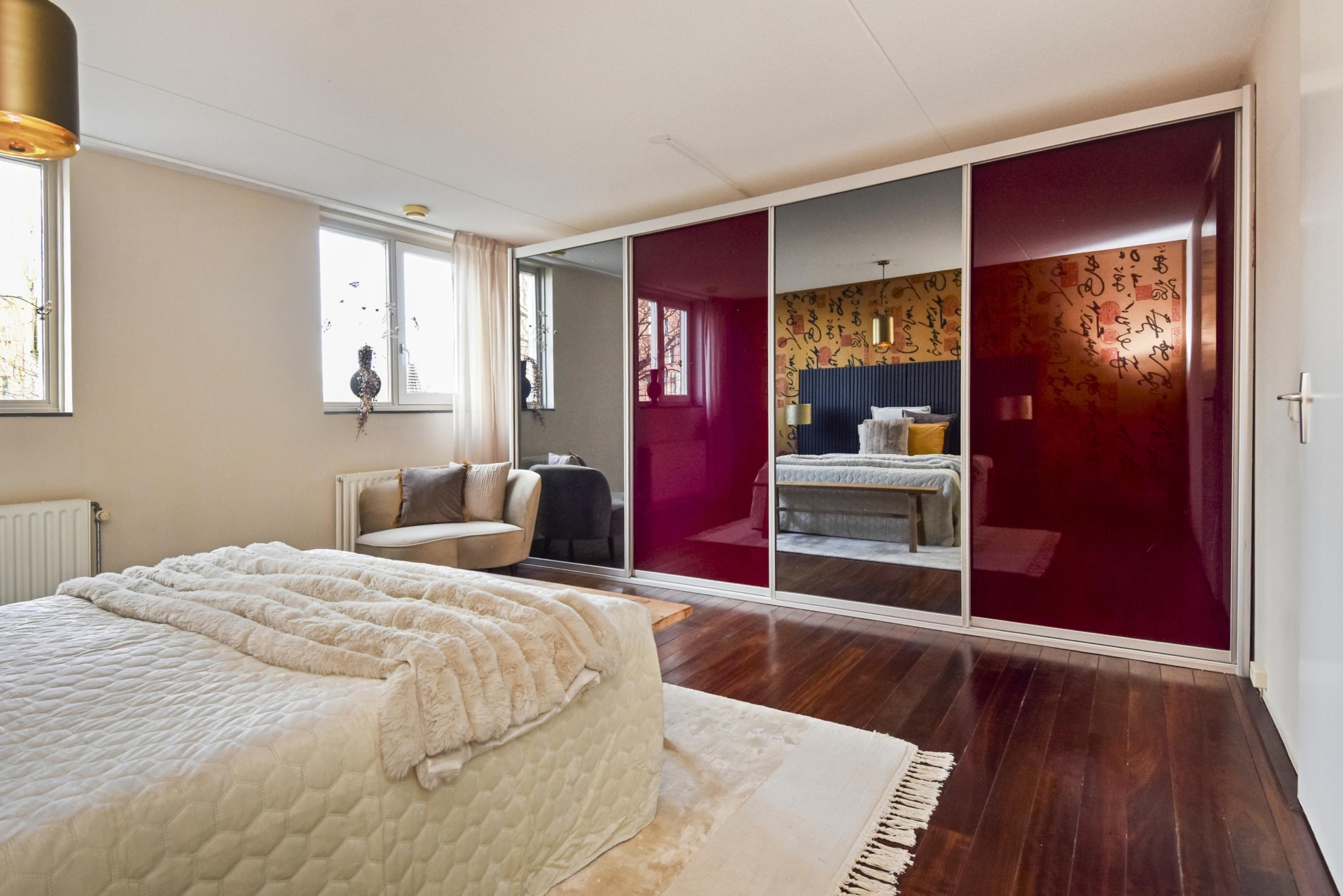 Via een binnentrap kom je op de 1e etage met een hele grote slaapkamer (voorheen 2 slaapkamers) met royale wandkast.
